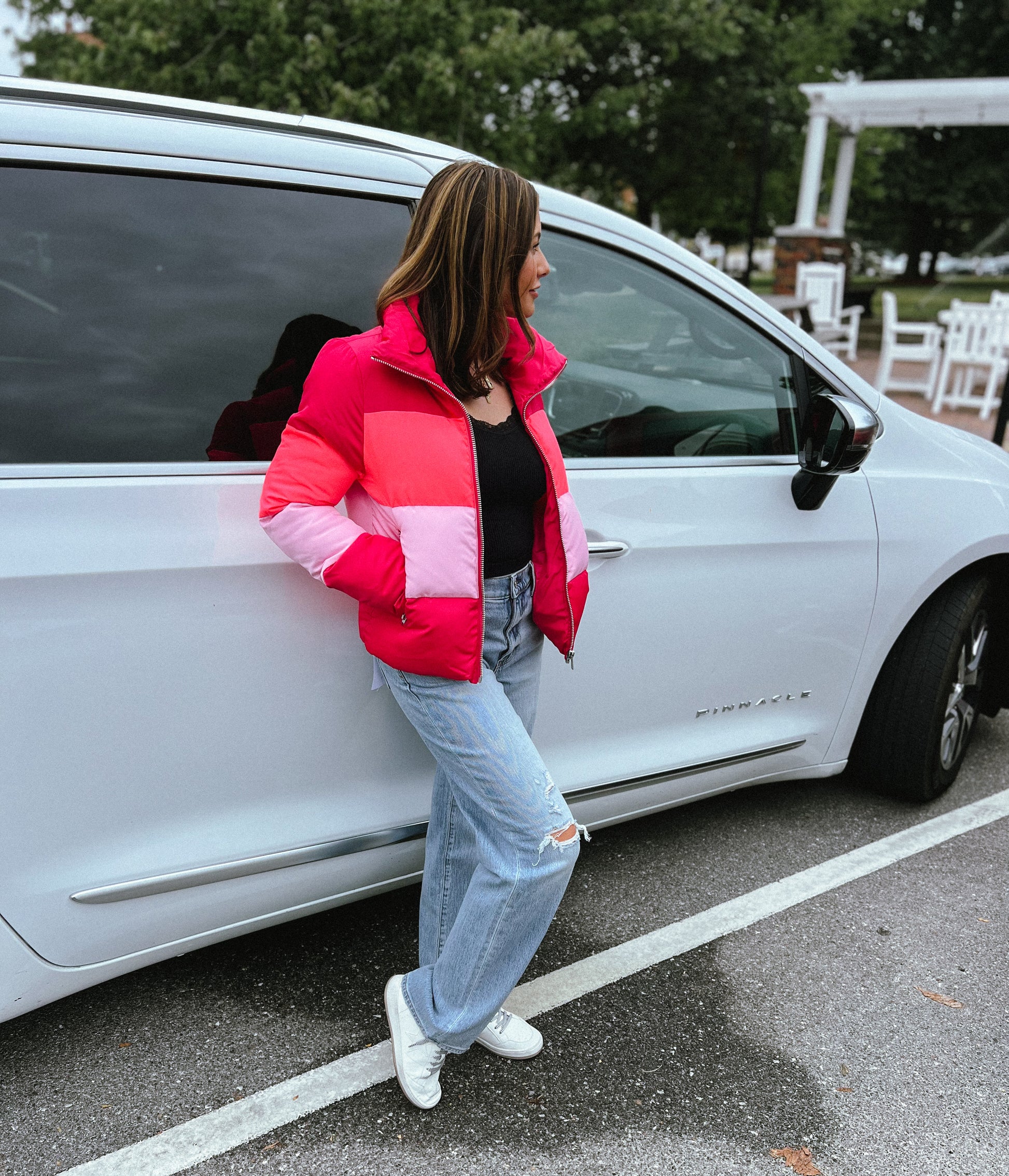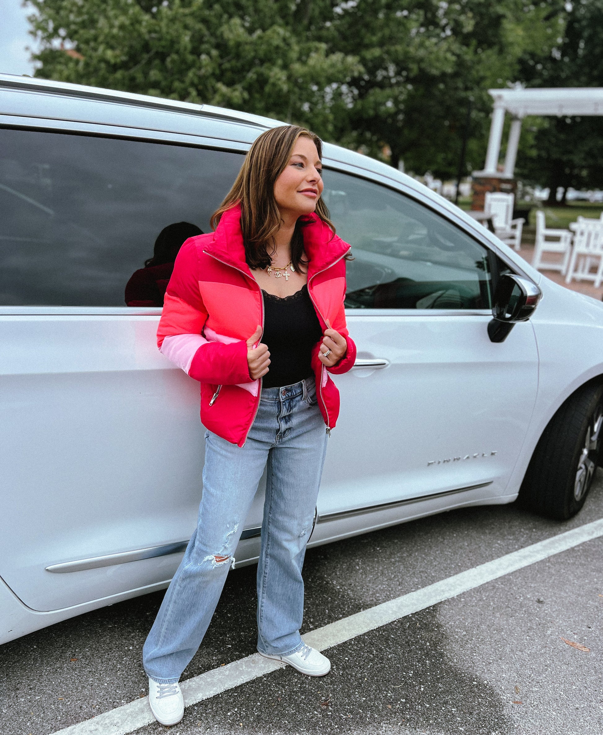 ¡No hay chaquetas acolchadas más elegantes que esta! ¡La Addison es la incorporación perfecta a tu colección de abrigos de invierno! Tiene cierre con cremallera y botones a presión, un diseño de bloques de color y dos bolsillos laterales. ¡Combínala con leggings, un body y zapatillas para lograr un lindo look para llevar!
