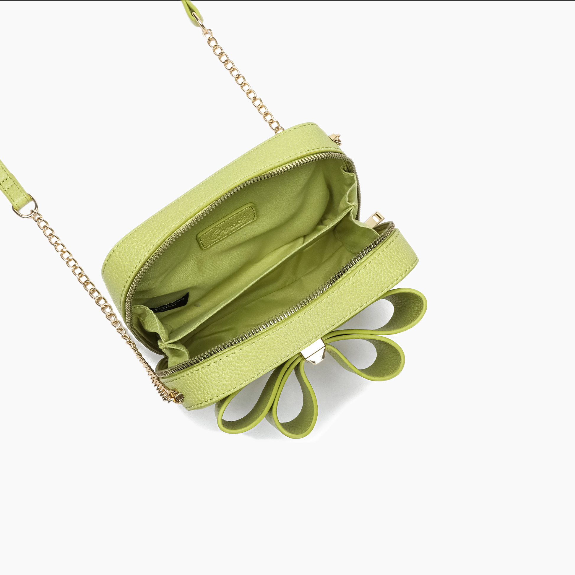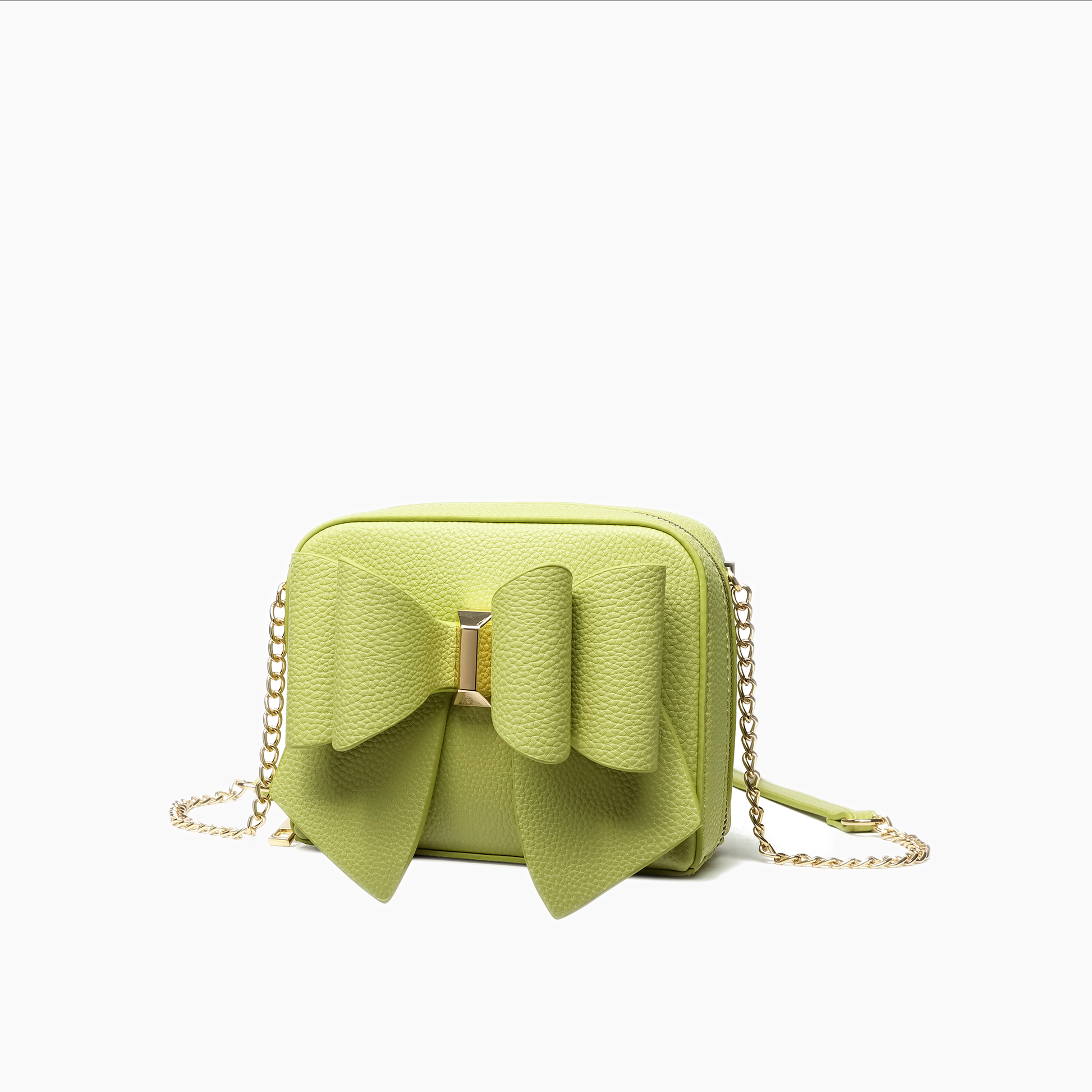 Our boxy mini bowtie purses are back in extravagant new holiday colorways to bring chic to elegance. Composed of durable vegan leather and decorated with a stylish chain meshed strap. This crossbody is the perfect grab and go accessory to elevate your outfit, or keep it casual for everyday.