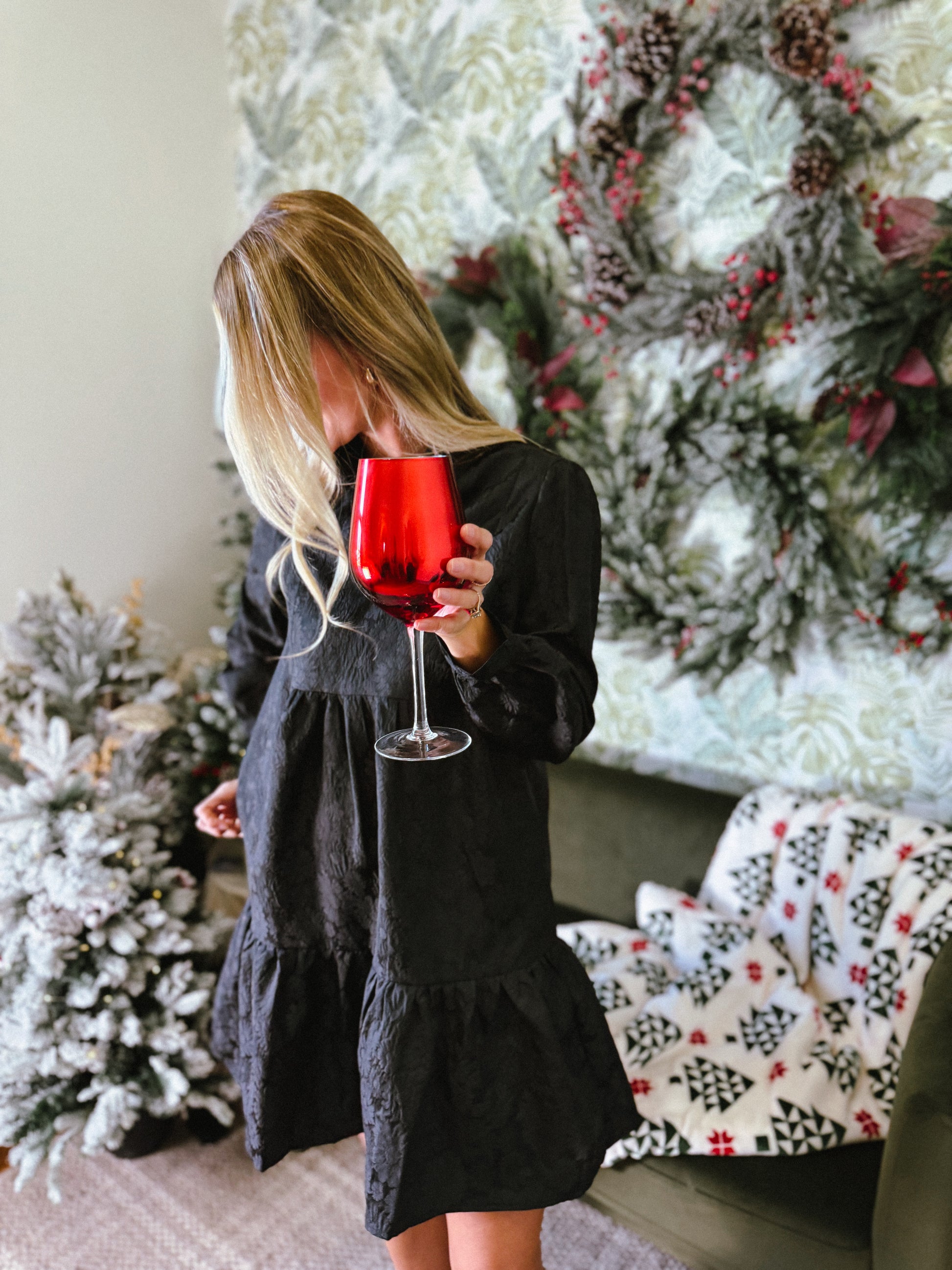Turn heads in the Claire Black Brocade Mini Dress, featuring a dramatic ruffle collar and elegant long sleeves. This playful yet sophisticated dress pairs classic brocade texture with a flirty mini length, perfect for dancing the night away or making a statement at your next event. Elevate your style with a touch of vintage charm and modern fun!