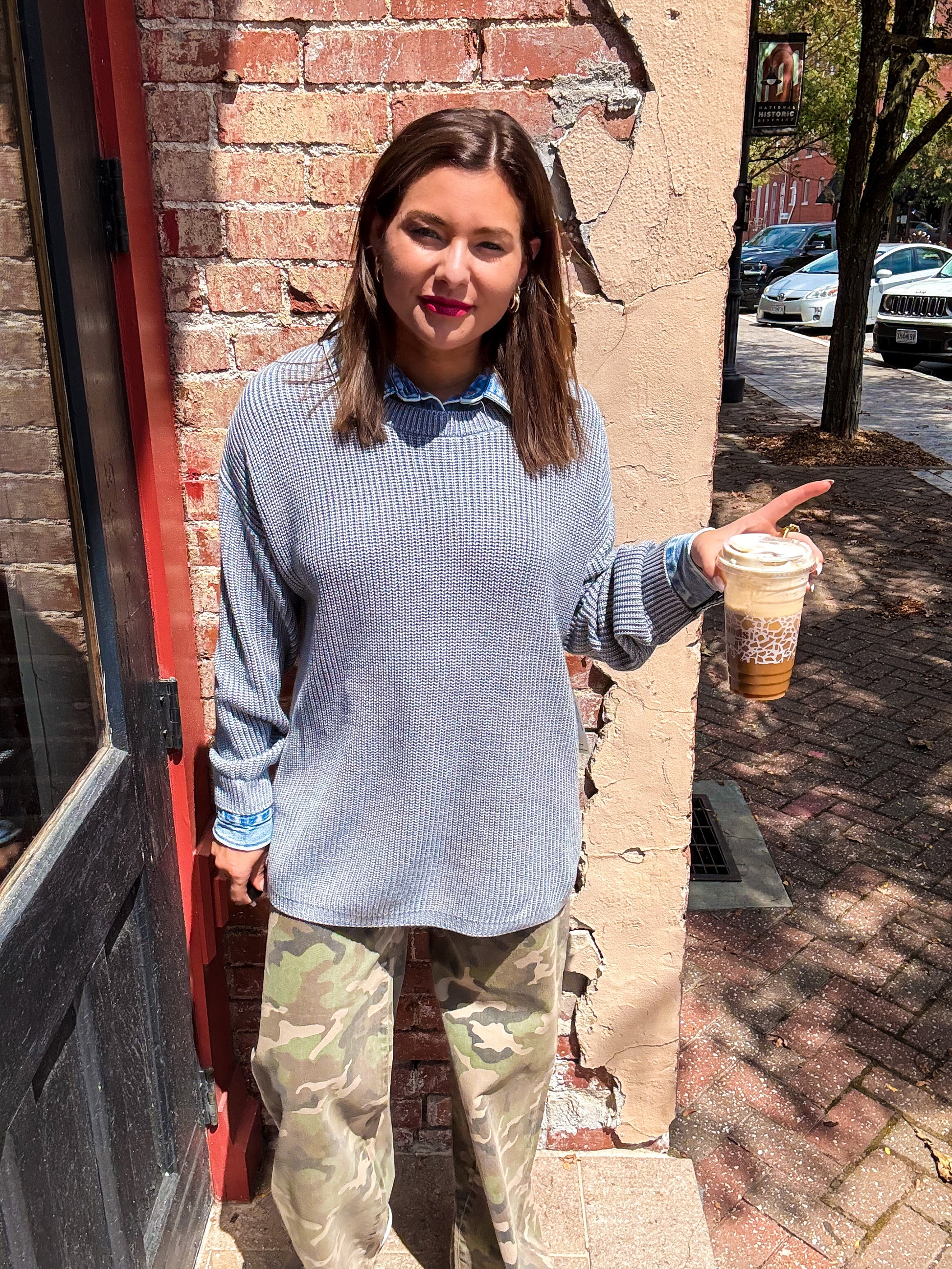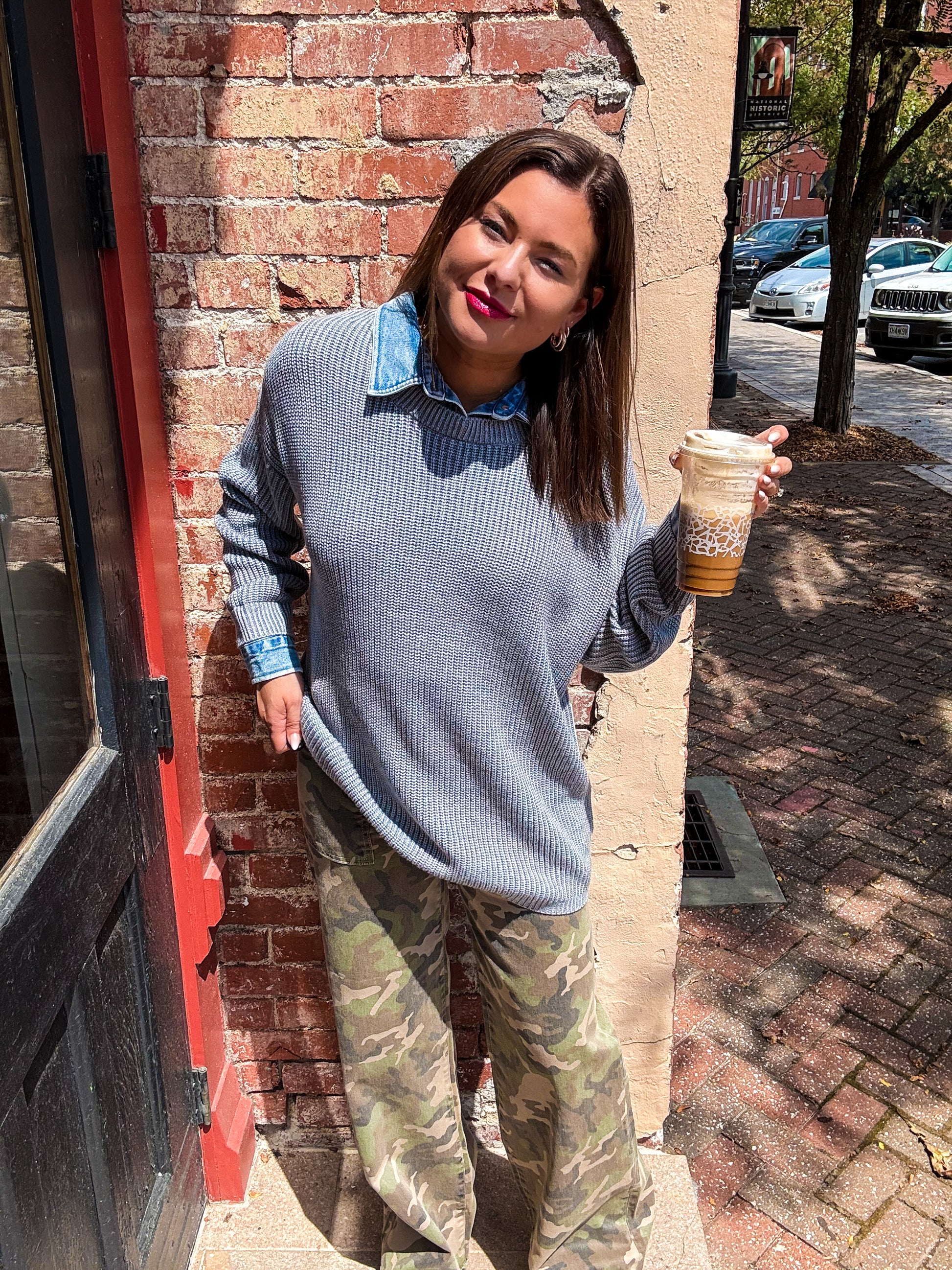 Cozy meets cool in this heather grey knit sweater featuring charming denim collar and cuff details. Made by Vintage Havana, it’s the perfect blend of soft comfort and casual edge to brighten up your everyday look with a fun twist.