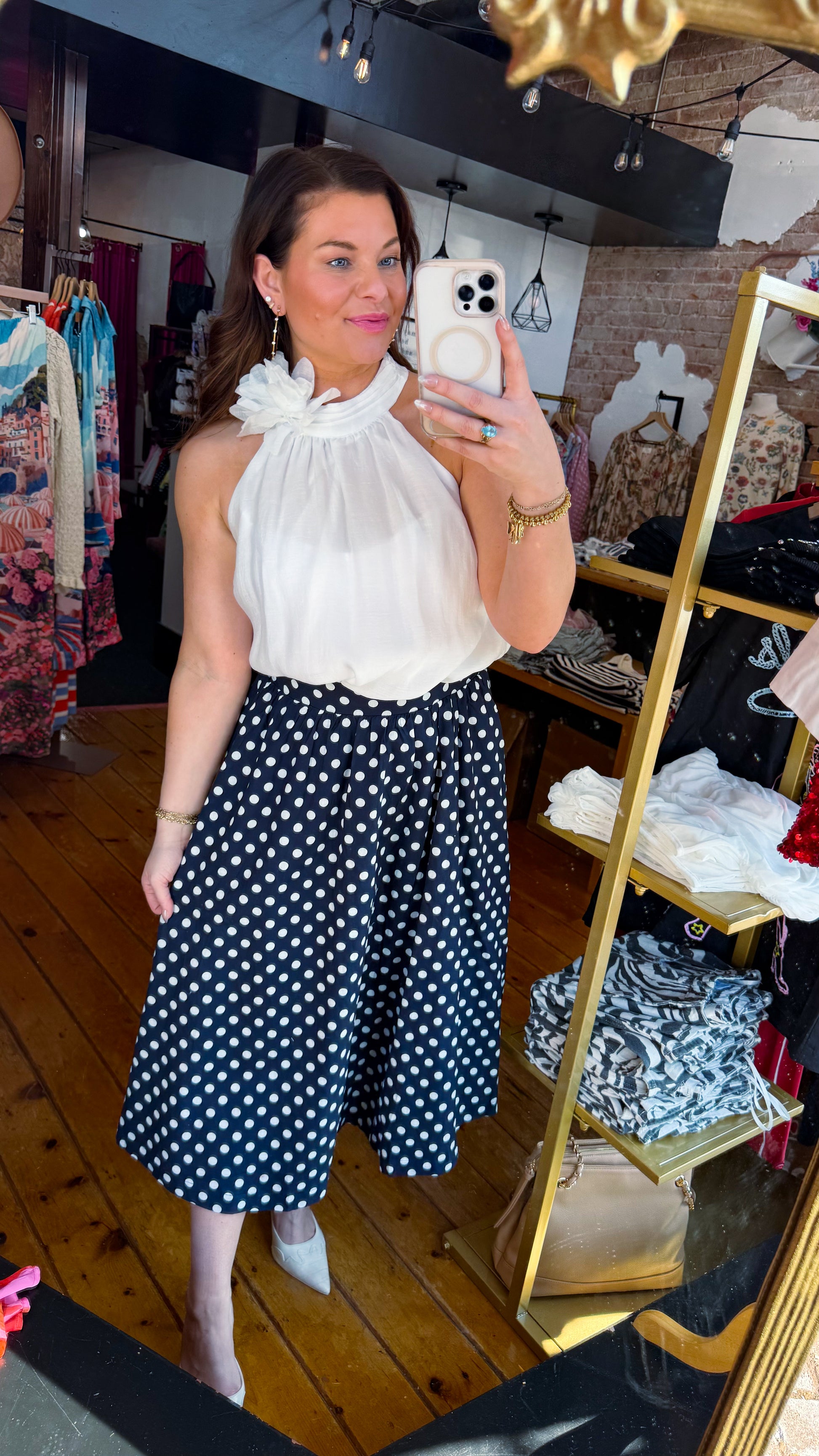Elevate your warm-weather wardrobe with this charming Gardenia Halter Top! This sleeveless wonder features a chic mock neck adorned with delicate floral applique that adds instant personality to any outfit. The convenient back button closure makes dressing effortless, while the lined, woven construction ensures a polished look without any see-through surprises. Lightweight and breathable, it's your new go-to piece for everything from casual brunches to garden parties. Style it solo or layer it under your favorite jacket for versatile, all-season appeal.