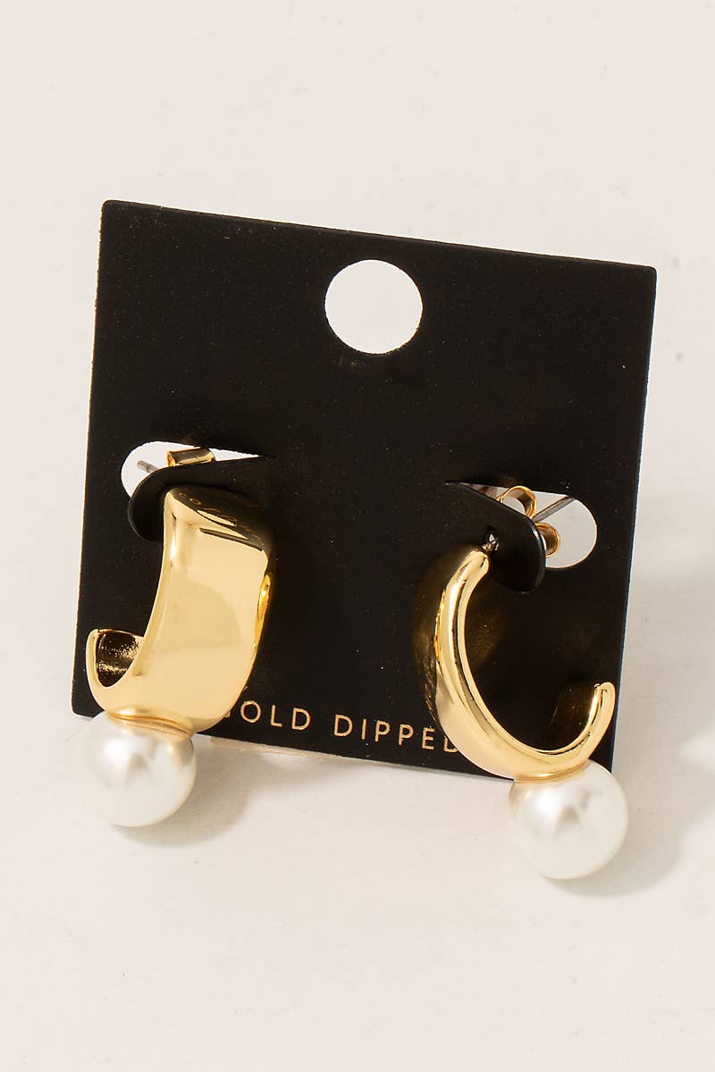 This pair of hoop earrings adds a modern gold dipped pearl charm wide style. Celebrate the art of accessorizing with this piece that effortlessly encapsulates modern trends.