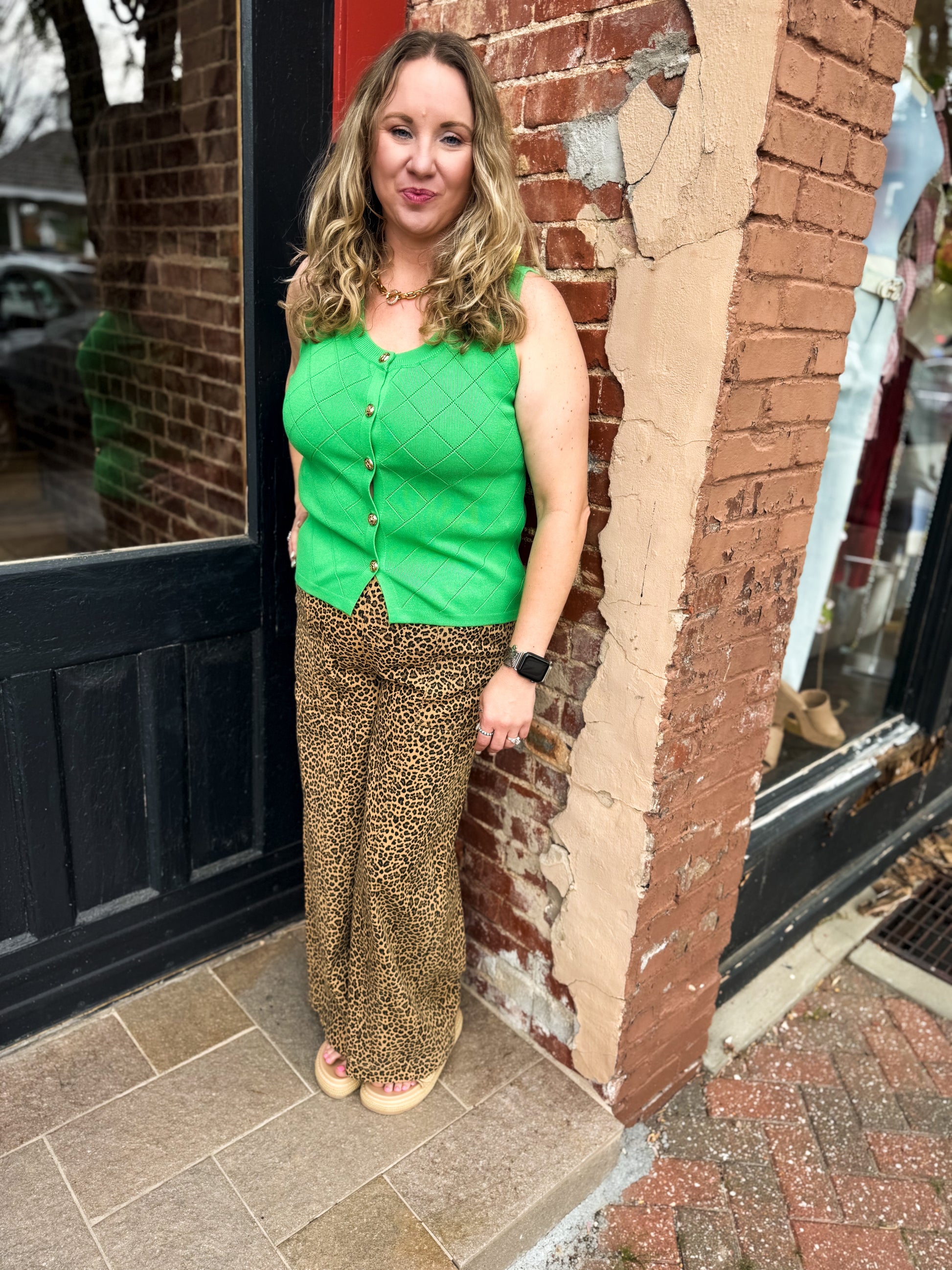 Stay stylish and cozy in our Ivy League Knit Vest. This sleeveless sweater vest features a unique abstract pattern, highlighted by gold accented button closure. Unlined and lightweight, it's perfect for layering. Upgrade your wardrobe with this versatile and on-trend piece.