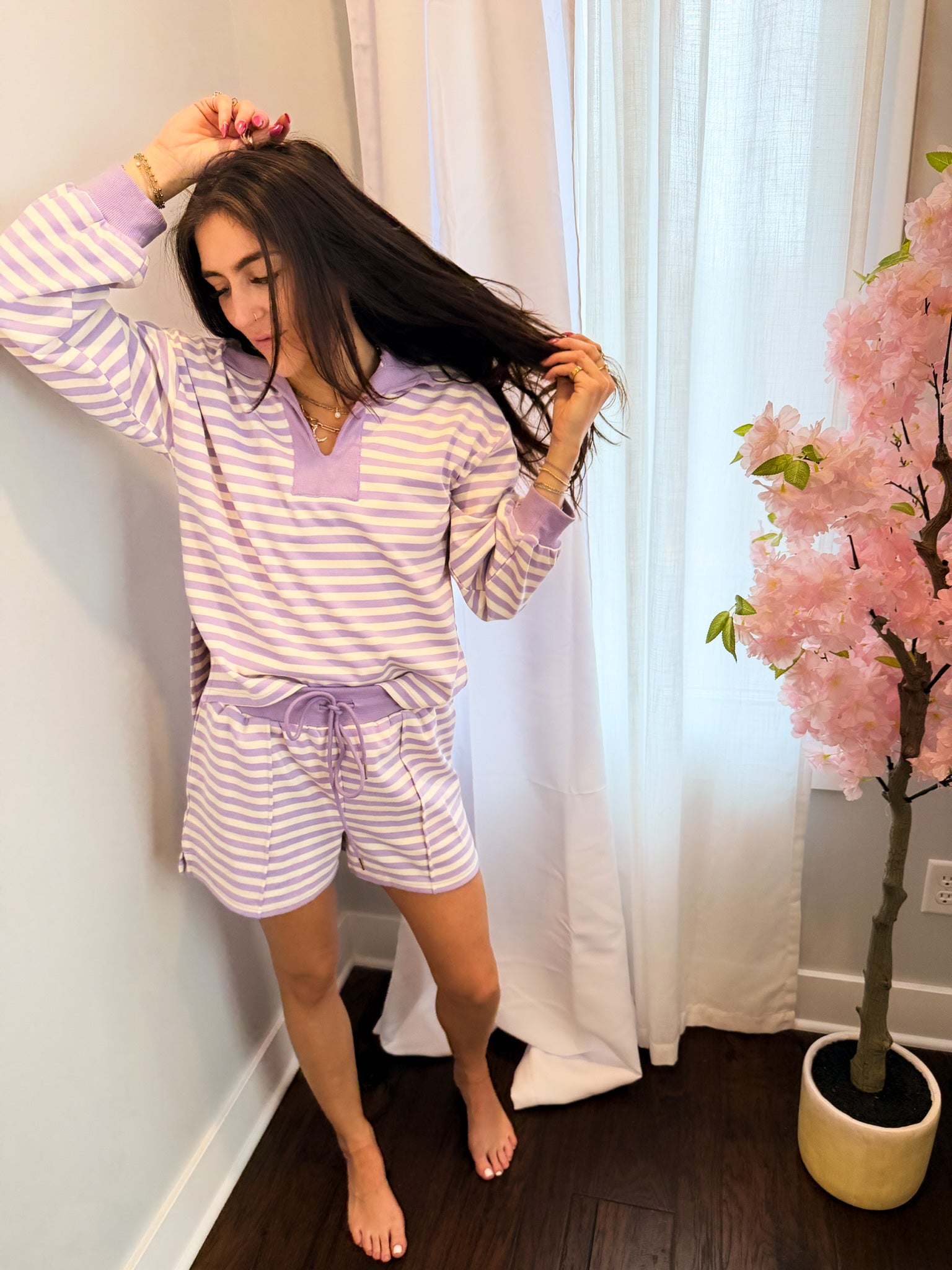 Lavender Stripe Lounge Pullover