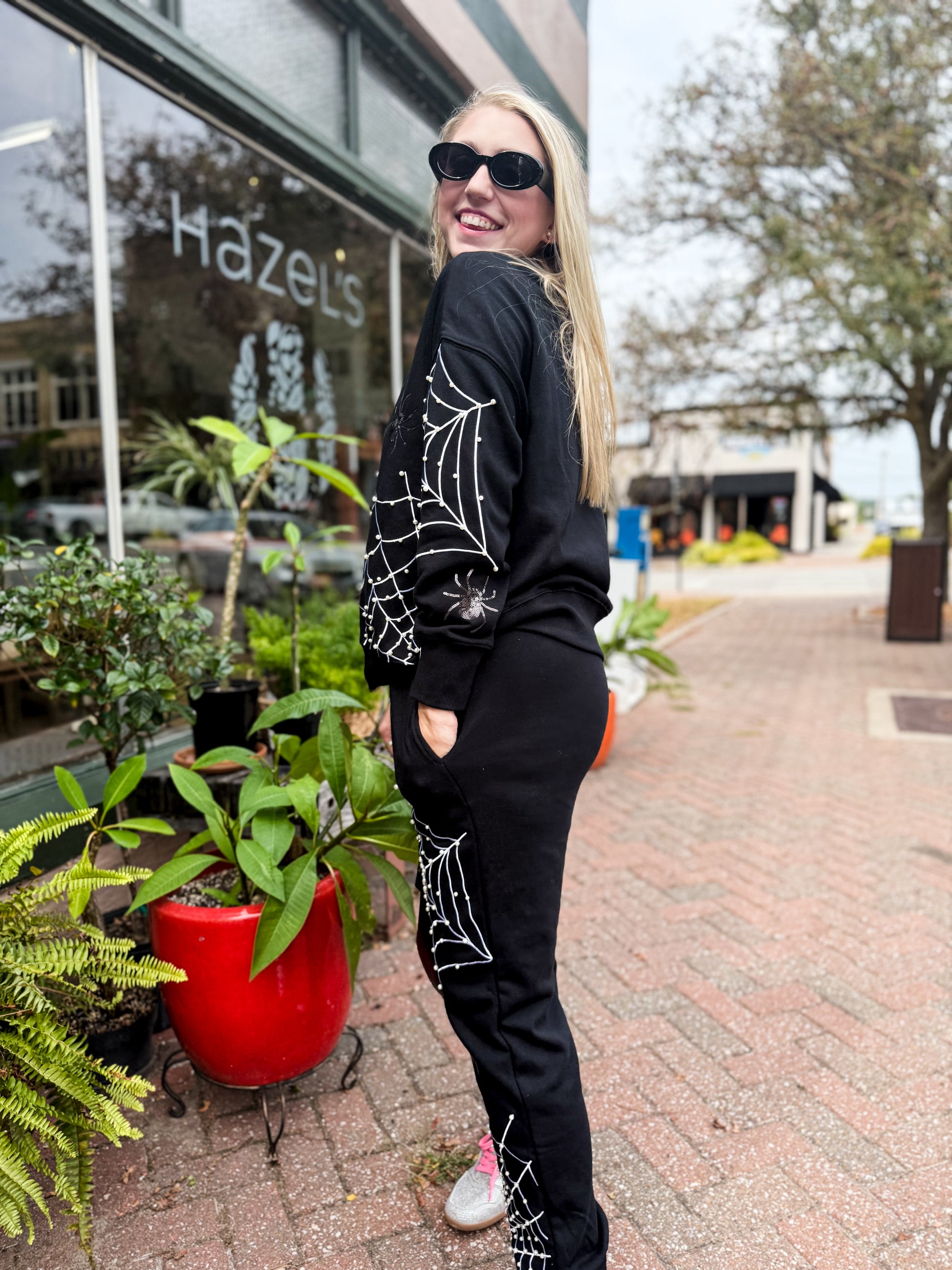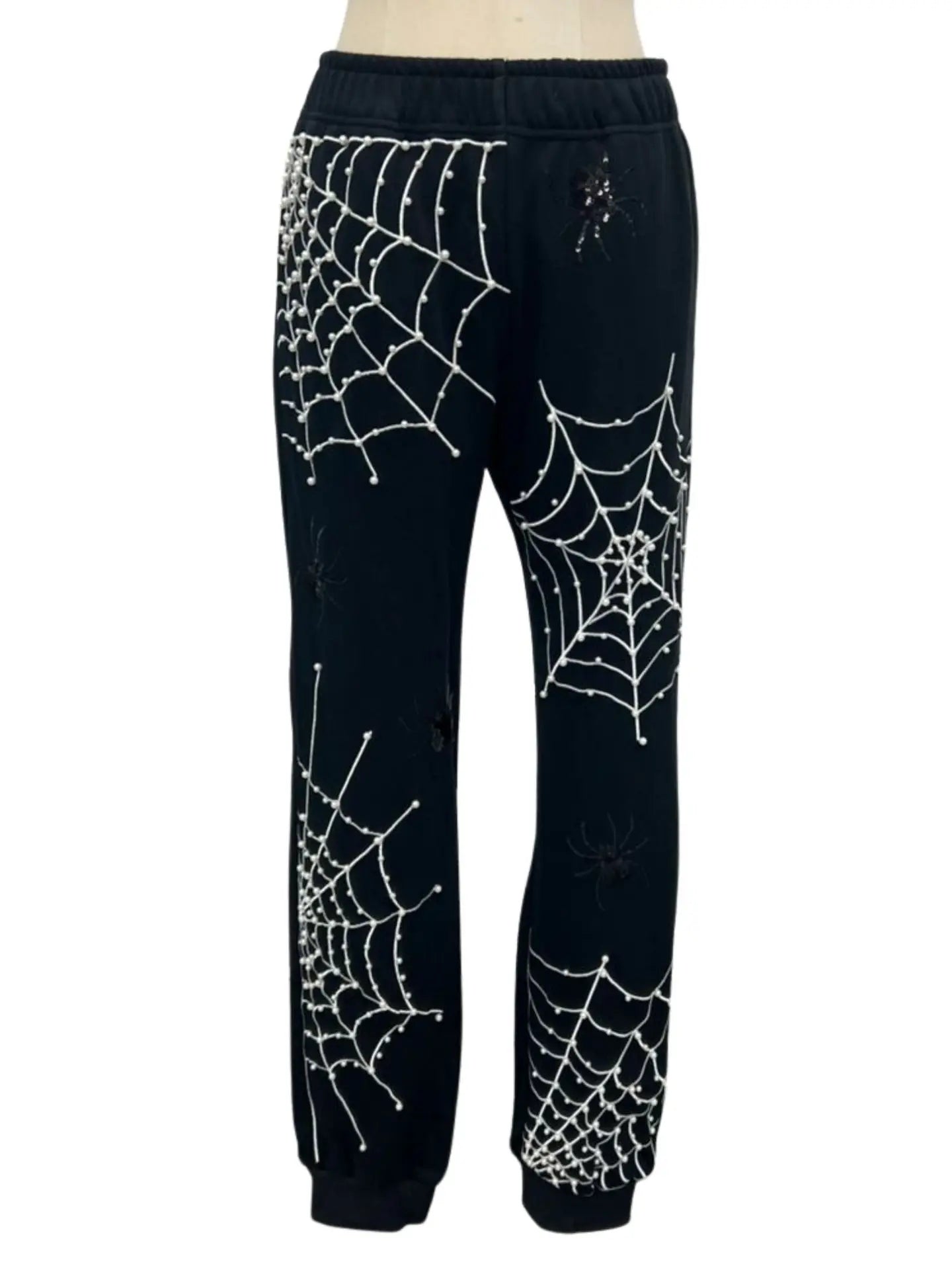 Get cozy and stand out in the Pearl Spiderweb Sweatpants by Brianna Cannon. Made from soft cotton Terry sweatshirt material, these playful pants keep you comfy while showing off a cool spiderweb design. Perfect for lounging or adding a quirky twist to your casual look!