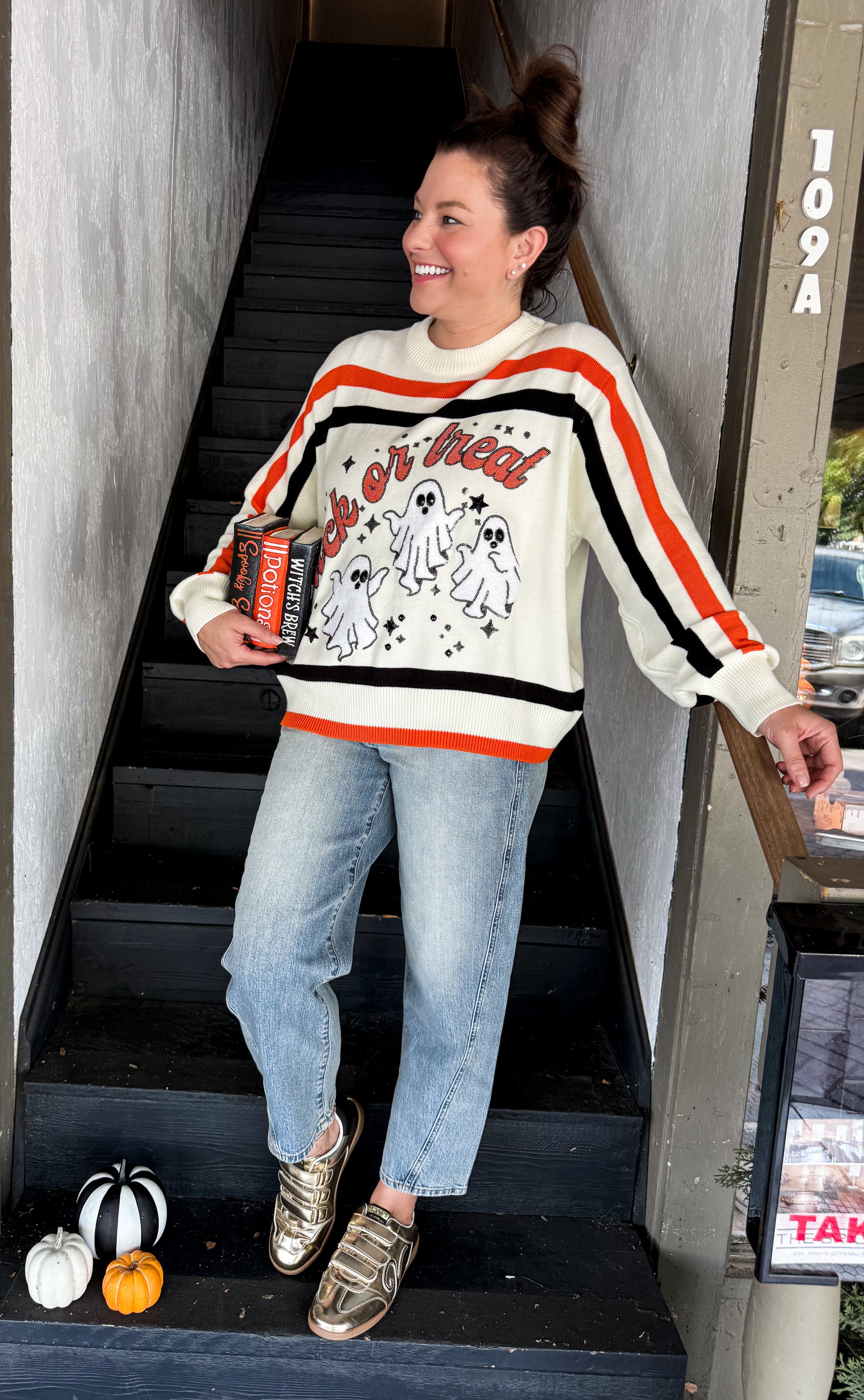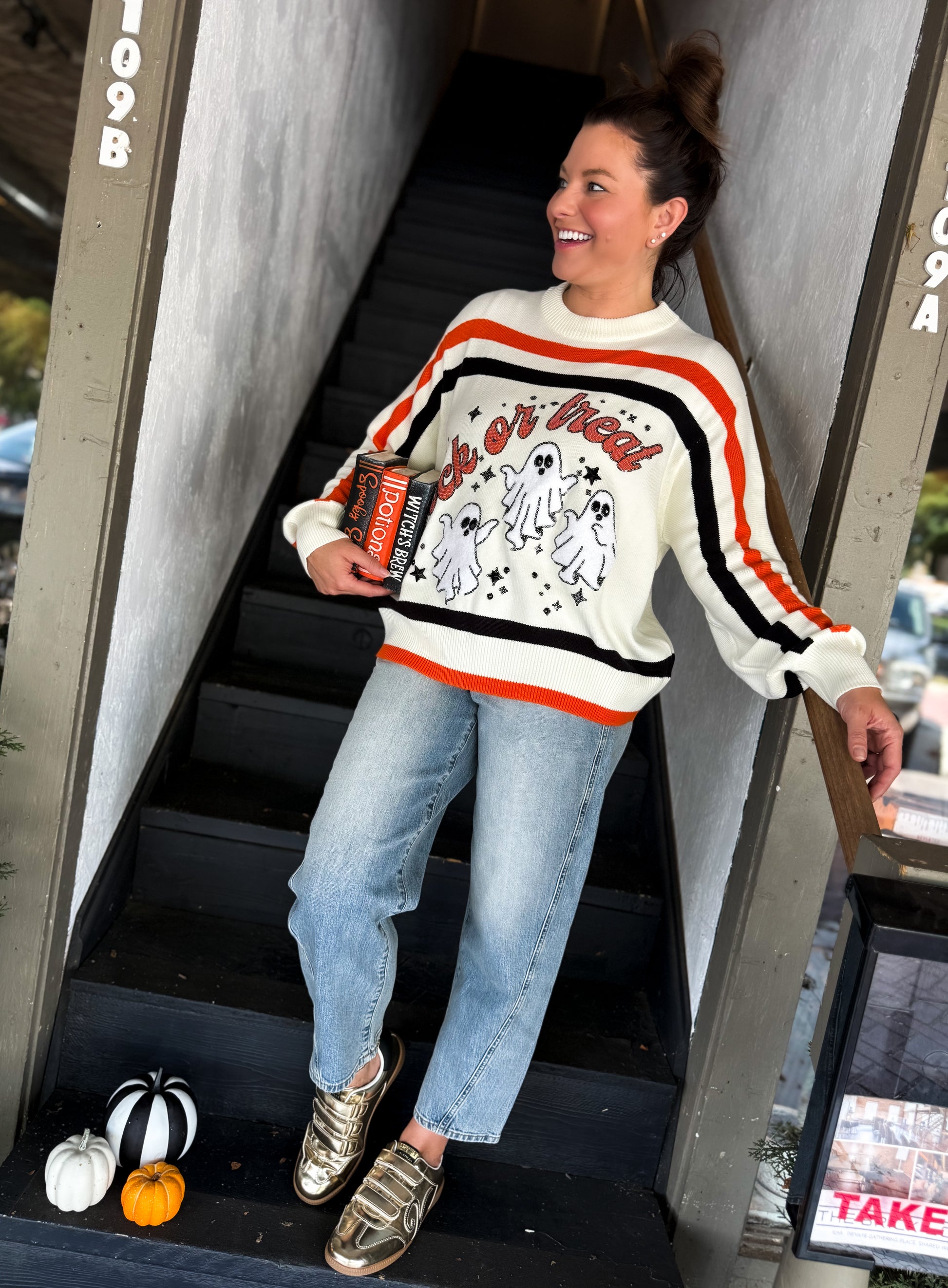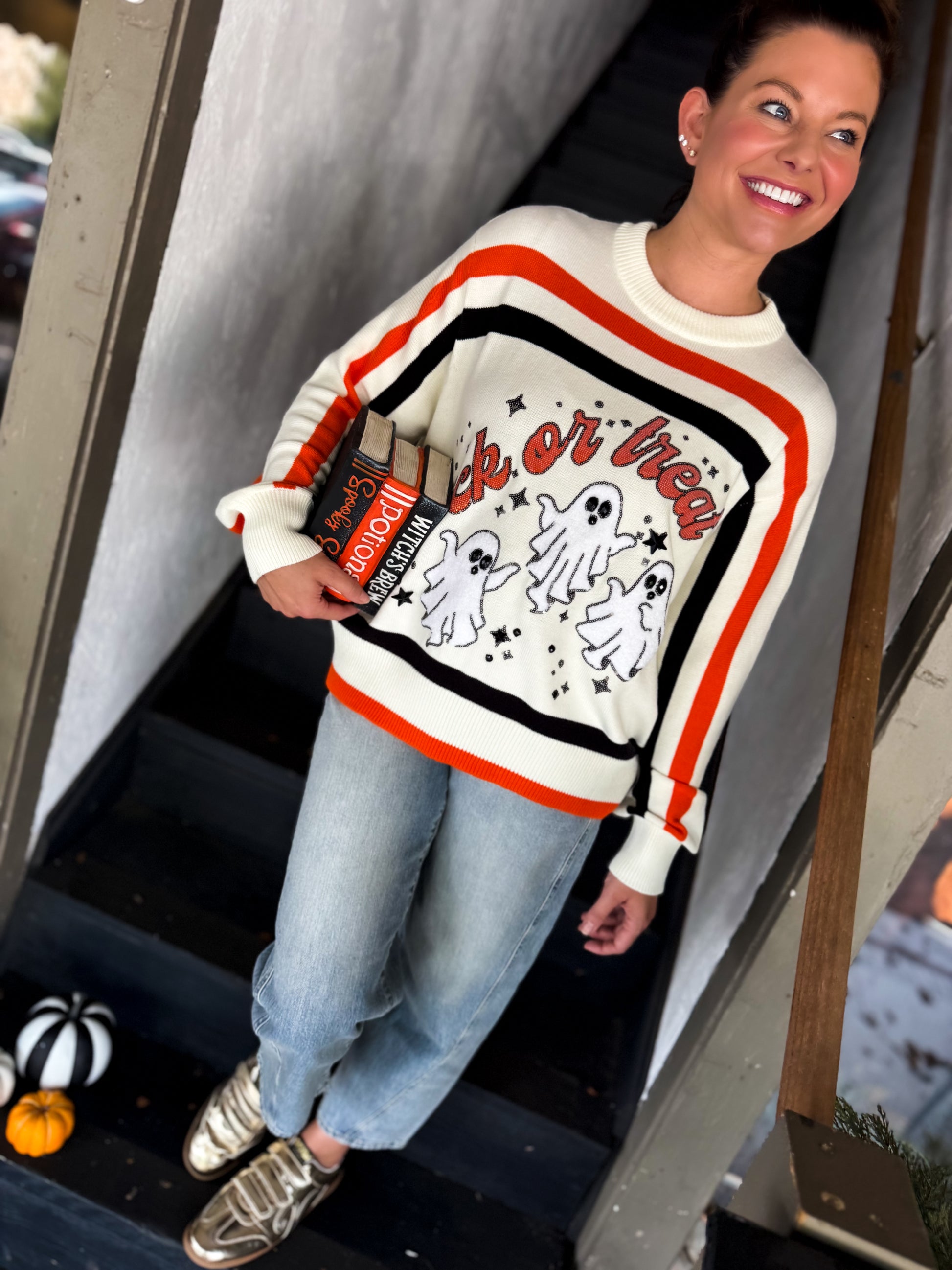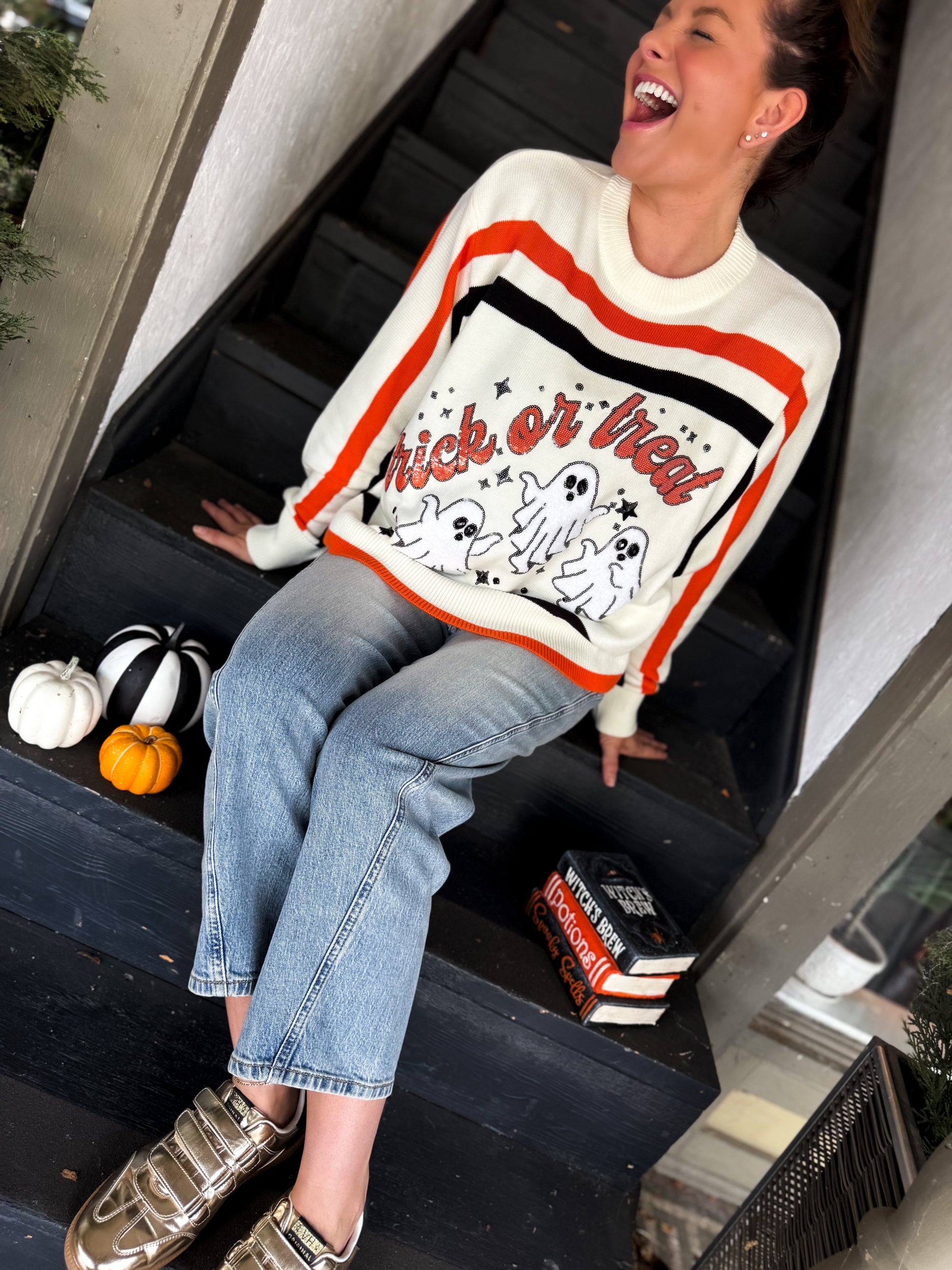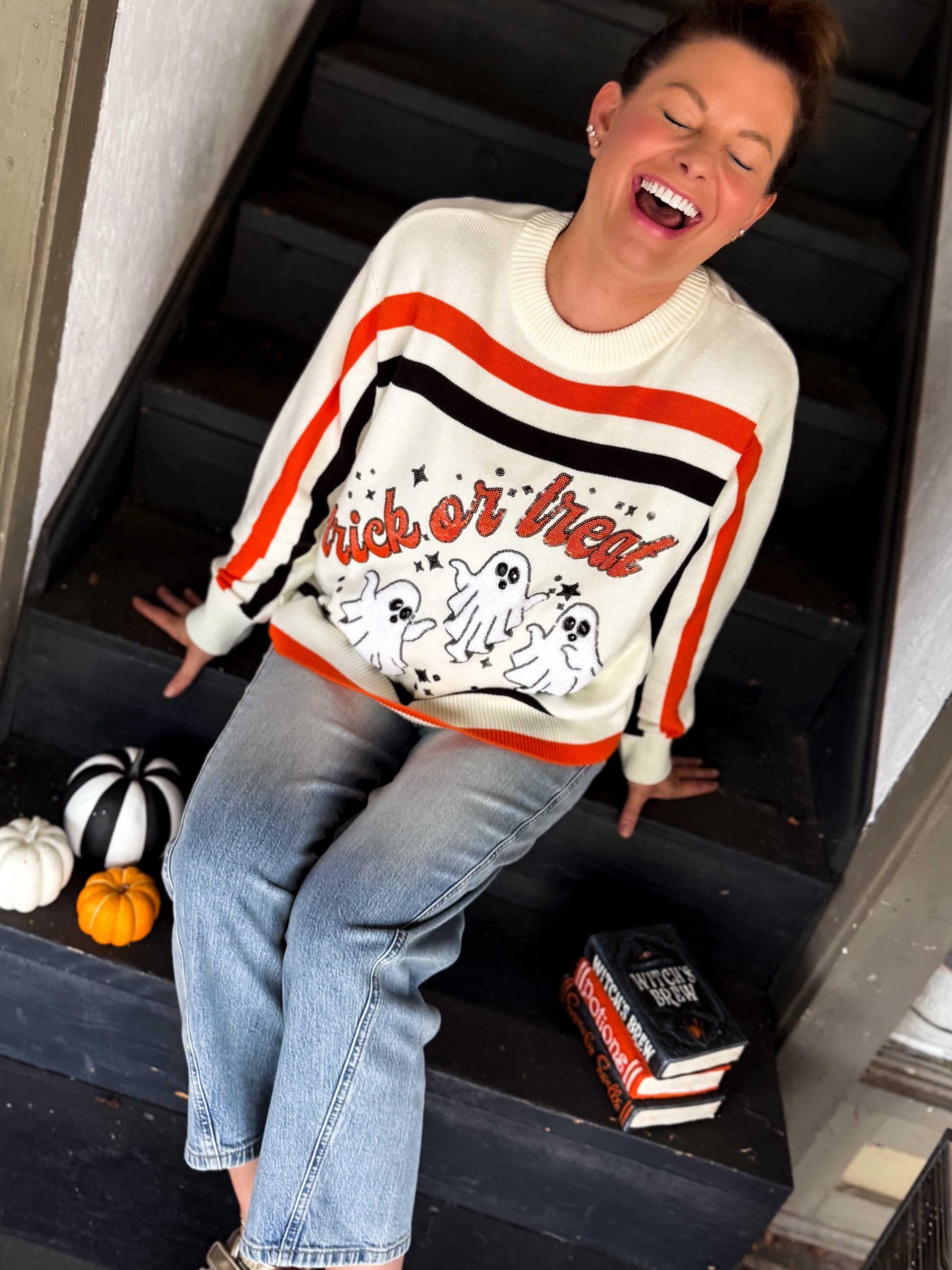 Queen of Sparkles Trick or Treat Stipe Sweater