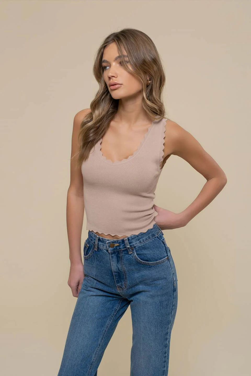 Get ready to make a splash in our Scallop Edge Knit Tanks! With a V neckline and sleeveless design, these tanks are perfect for layering. The scalloped edge adds a touch of fun and flair to any outfit. Dive into style with these versatile tanks!