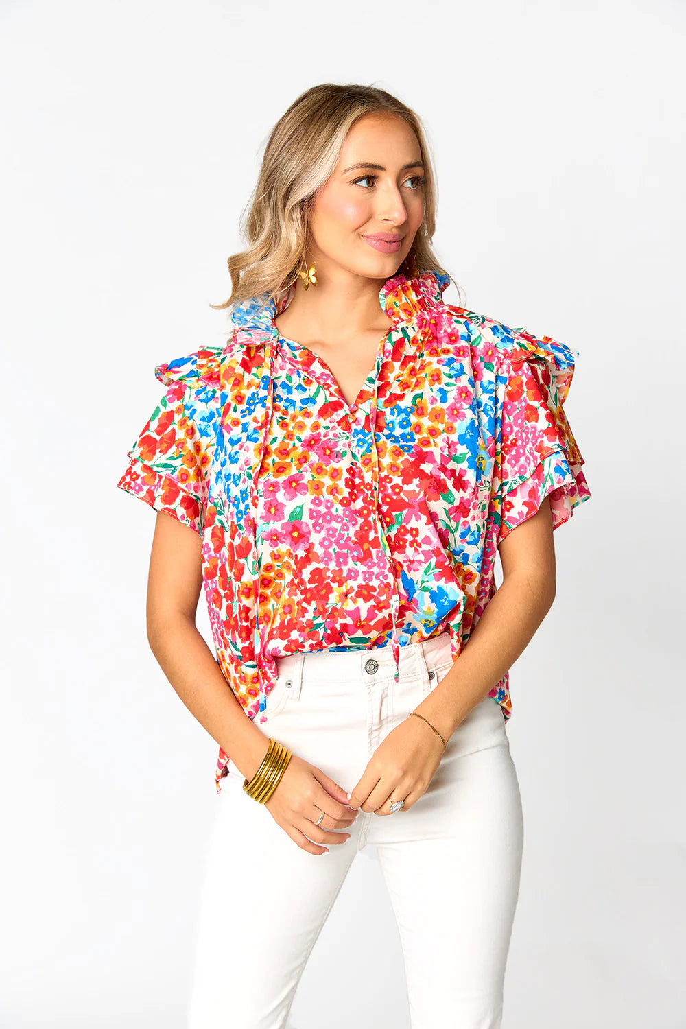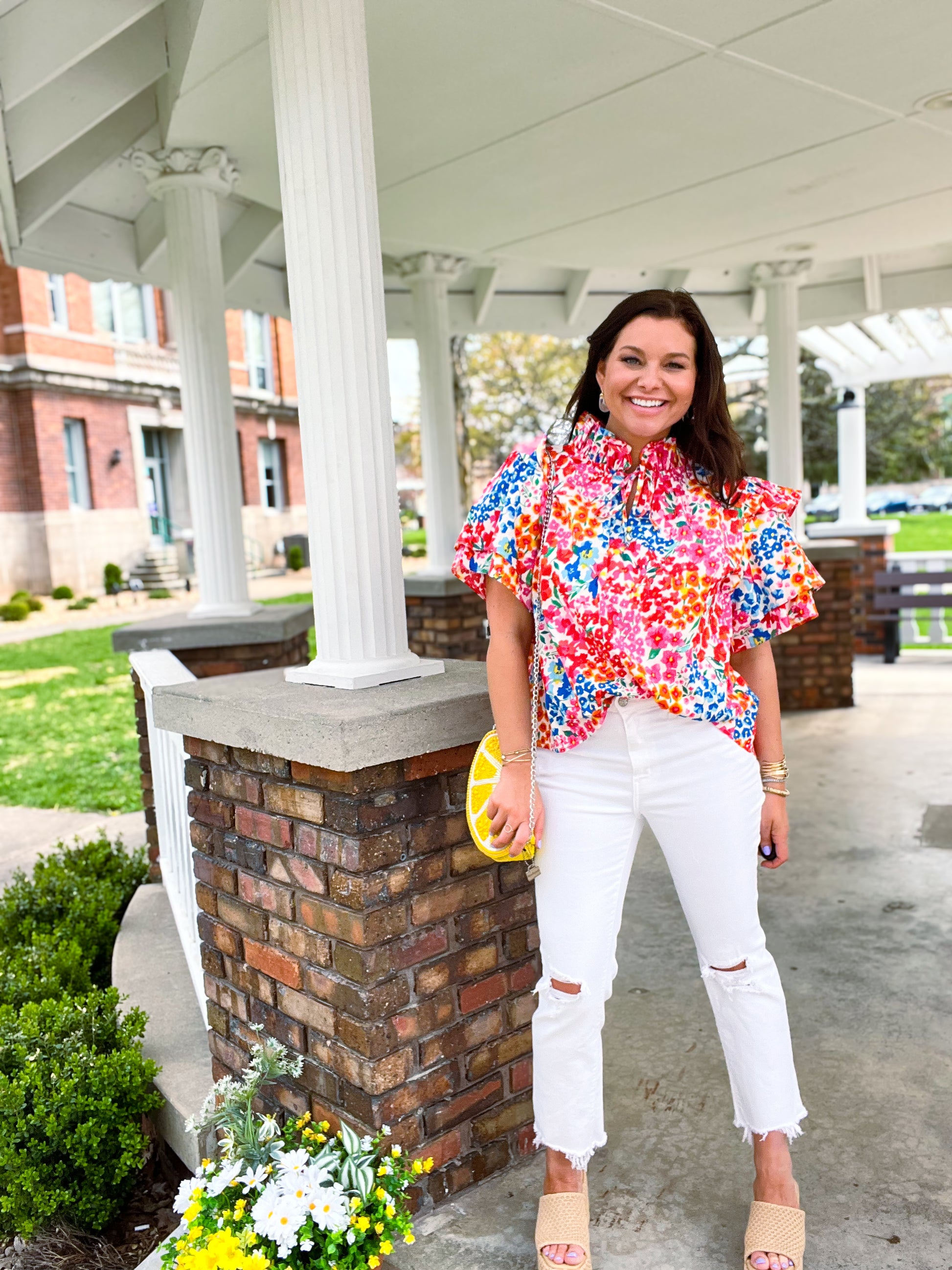 ¡Agregar un poco de estilo a nuestras siluetas relajadas nunca ha lucido mejor! ¡Nuestro top Shauna es la prenda perfecta para tu armario! Tiene una silueta holgada, detalles de volantes en los hombros y corbatas para un escote ajustado. ¡Combínalo con tus pantalones favoritos para un look de oficina o con shorts para un día de compras con tus amigas!