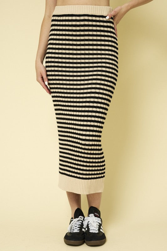 Dale un toque divertido a tu atuendo con nuestra falda midi de punto acanalado a rayas. Esta falda, confeccionada con un material de punto acanalado, agrega textura y dimensión a tu look. Las rayas le dan un toque divertido y dinámico. Perfecta para cualquier ocasión, esta falda midi es un artículo imprescindible para cualquier persona a la moda. (¡Pose a rayas con esta peculiar falda midi!)