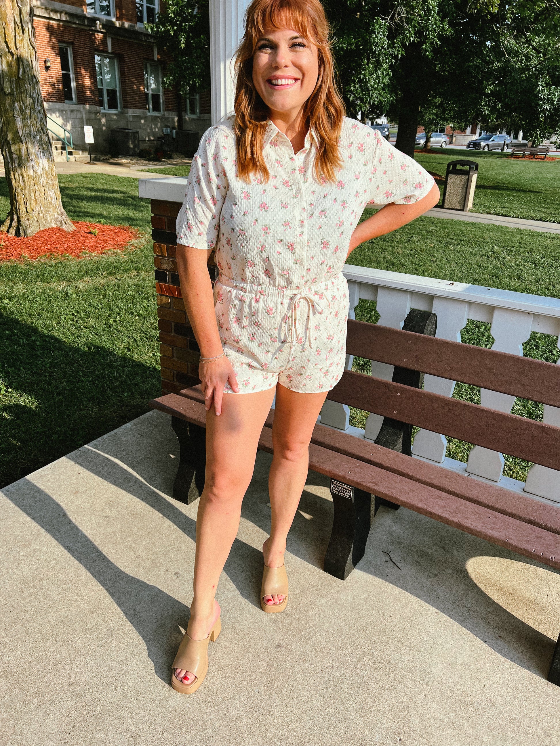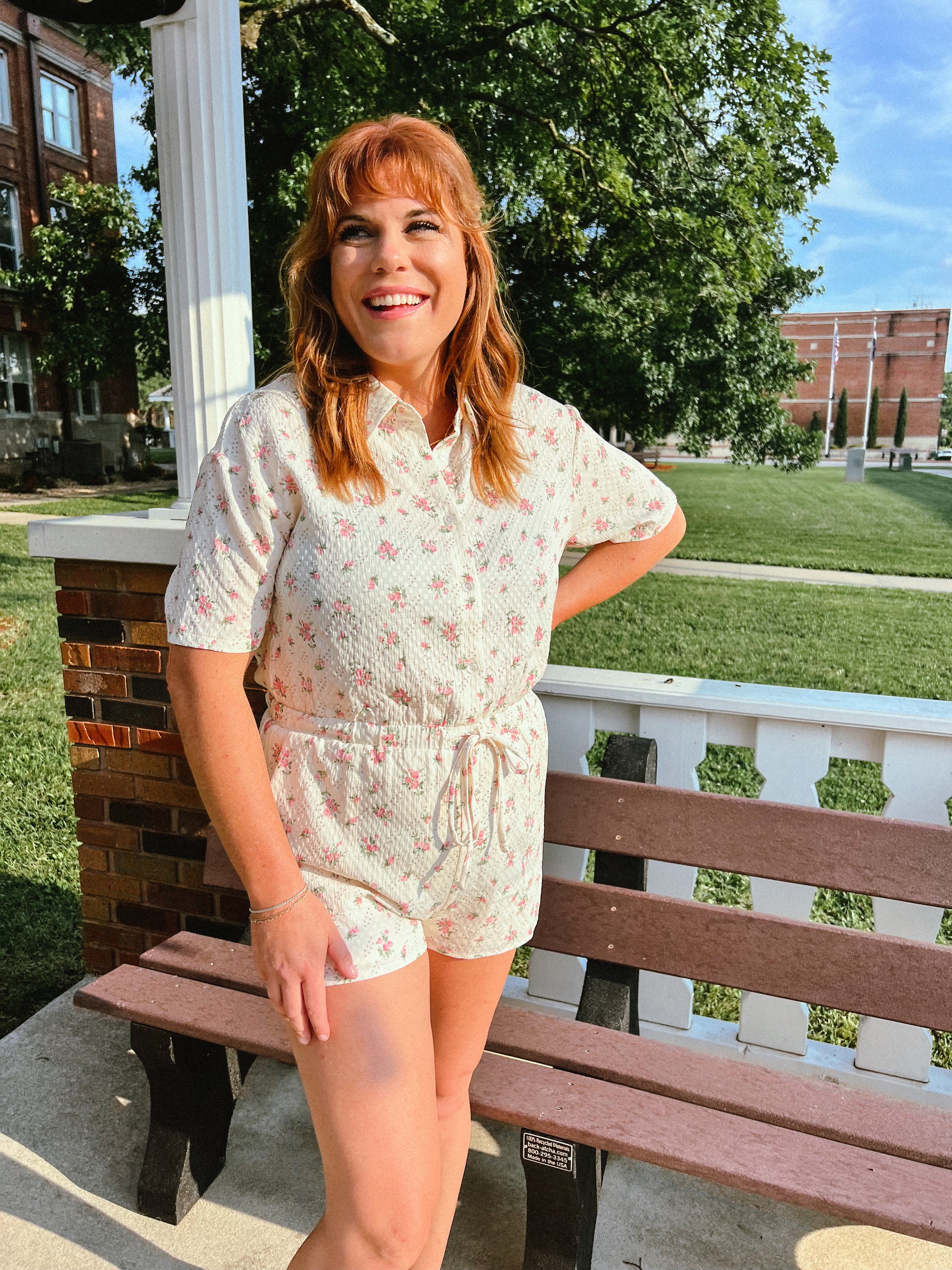 ¡Prepárate para una sobrecarga de ternura con nuestro mono con ramo de flores diminuto! Este mono divertido presenta un estampado encantador y una textura de gofre cómoda. Completo con cuello, mangas cortas y botones delanteros, también tiene una cintura natural ceñida con cordón y bolsillos laterales para una máxima comodidad. Perfecto para un día al aire libre o para relajarse en casa.