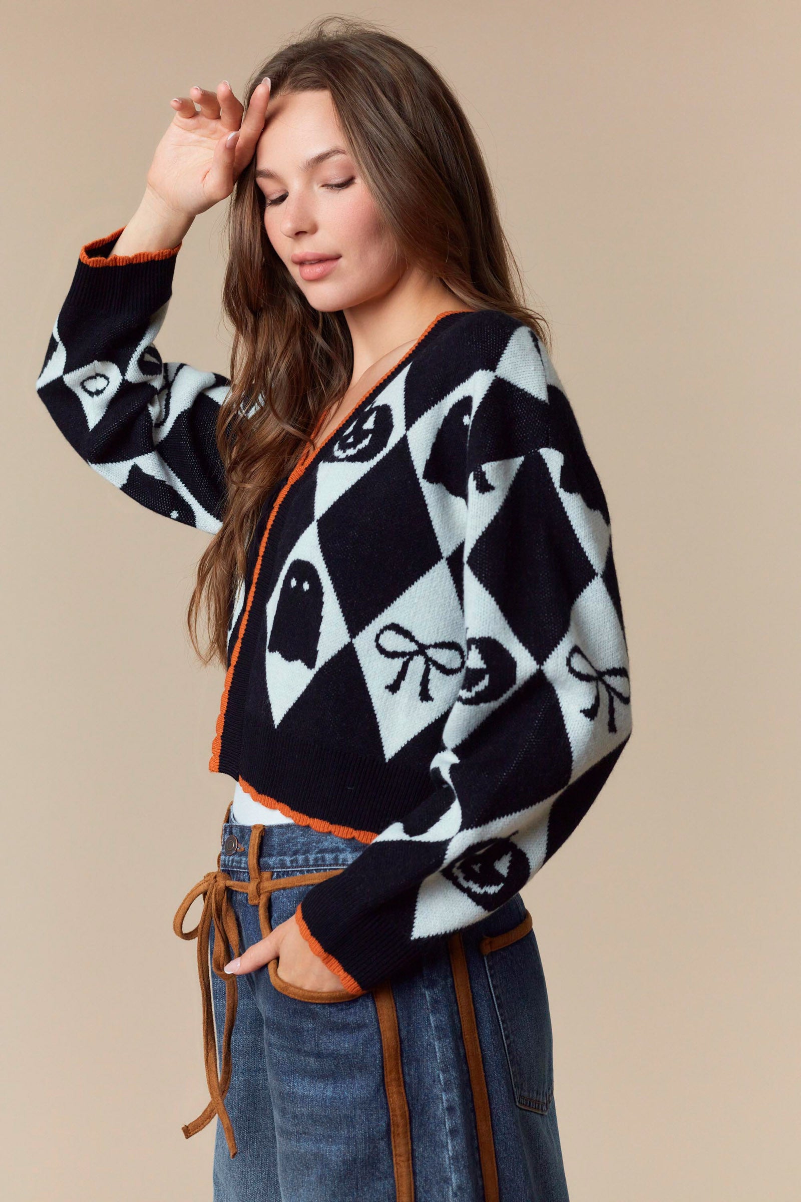 Add a spooky twist to your wardrobe with the Argile Ghostly Cardigan! This playful cropped cardigan features a charming front tie detail, perfect for layering over your favorite Halloween looks. Its lightweight fabric keeps you cozy without overheating, making it ideal for crisp autumn nights or festive parties. Embrace the season’s spirit with a fun and flirty piece that’s as comfortable as it is bewitching.
