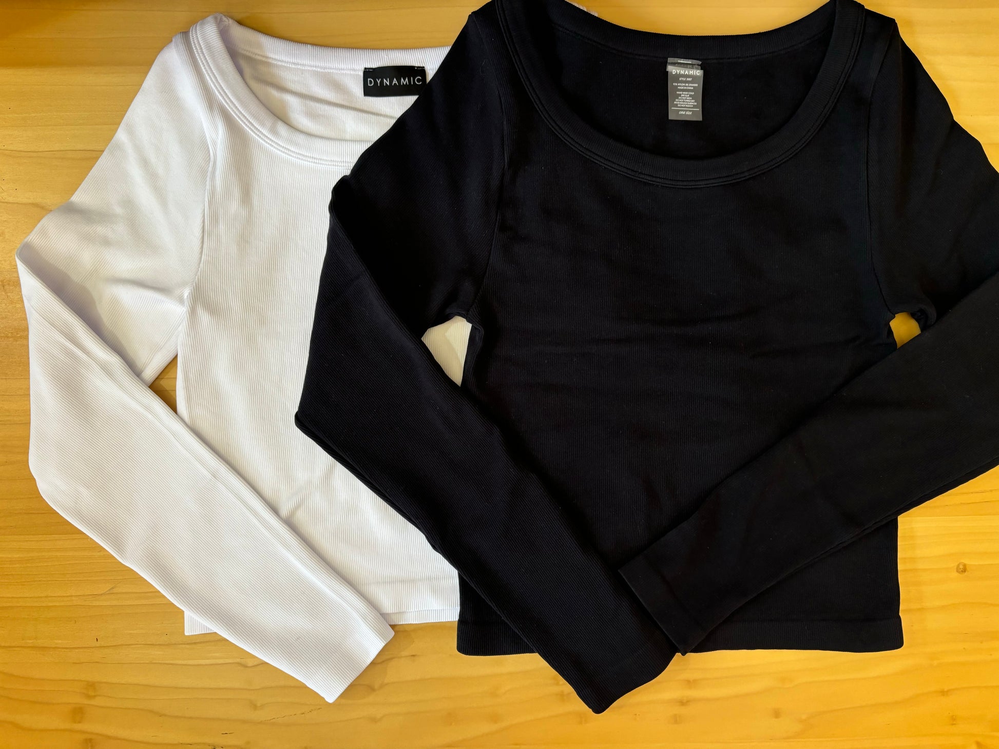 Unleash your style in our Basic Ribbed Long Sleeve Tee. Made with a stretchy ribbed fabric and a unique wide neck design, this tee effortlessly combines comfort and fashion. One size fits all, making it the perfect addition to any wardrobe. Upgrade your basics game now!