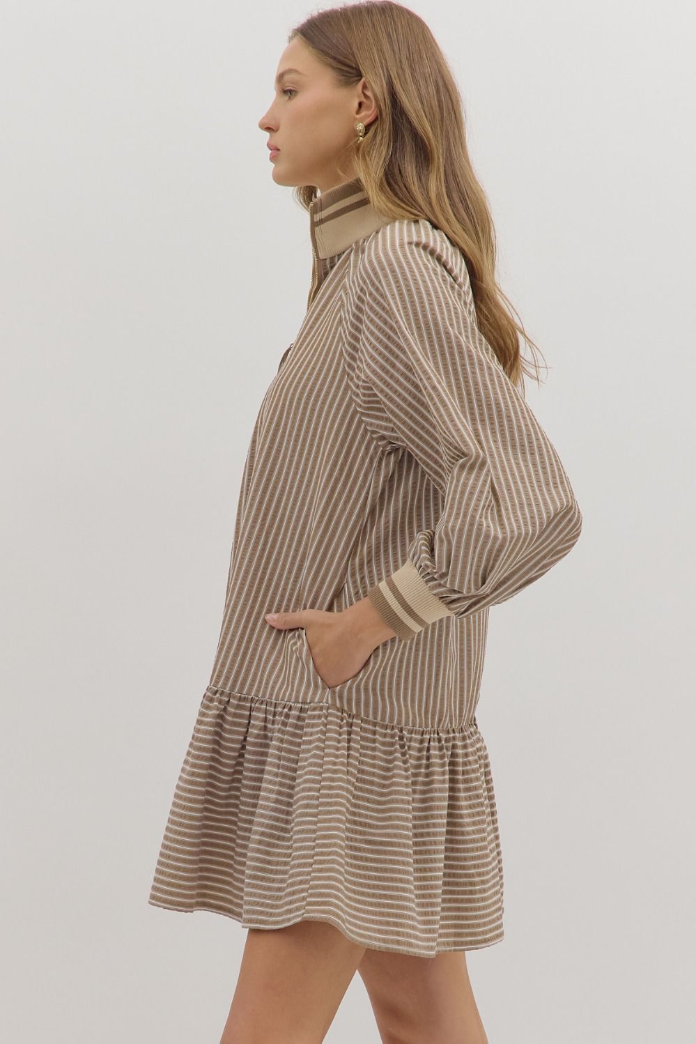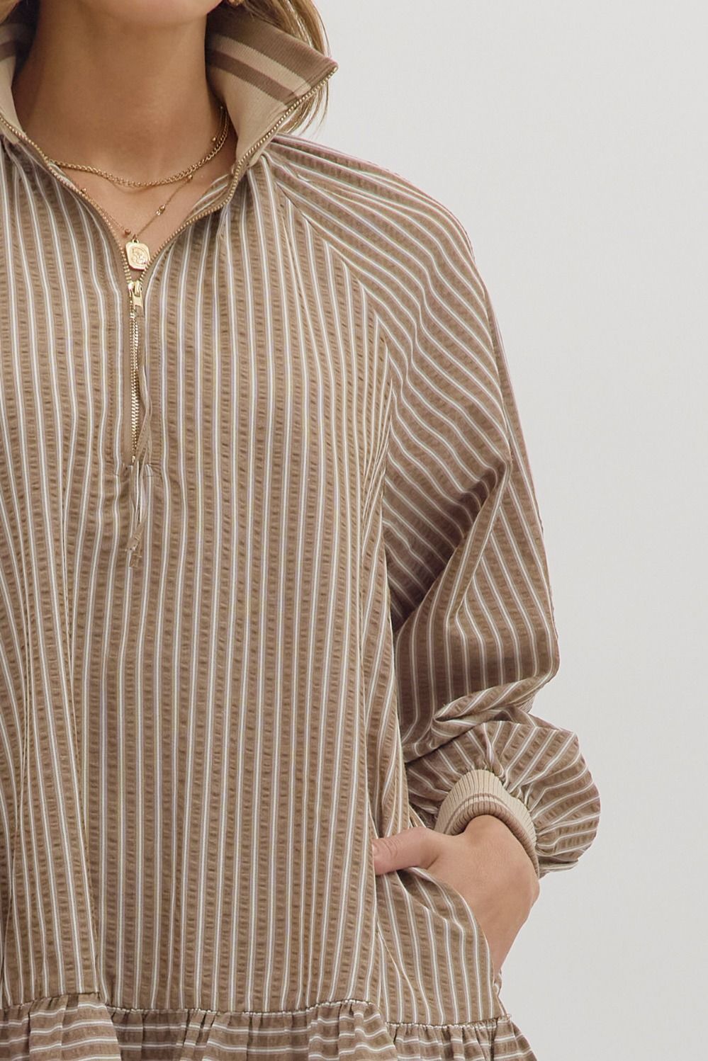 Step into fun and flair with the Becky Stripe Dress! This playful mini dress flaunts bold stripes, a comfy ribbed collar, and a easy front zipper for a pop of attitude. Lightweight and woven with a cozy lining, it’s made to move with you. Ribbed cuffs add a cute touch, while a handy side pocket keeps essentials close. Perfect for turning heads wherever you go!