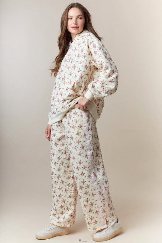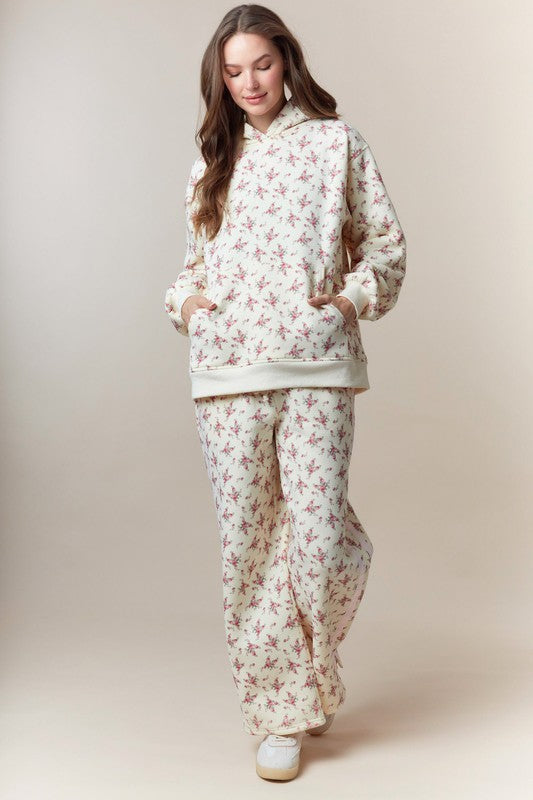 Slip into cozy charm with our Blush Meadow Lounge Pants. Featuring a soft heavy fleece terry fabric and playful side band contrast, these long pants bring comfort and style together. The waist tie detail adds a fun, adjustable fit perfect for lounging or casual days. Embrace relaxed vibes with a touch of flair! Add the hoodie to make a full set!
