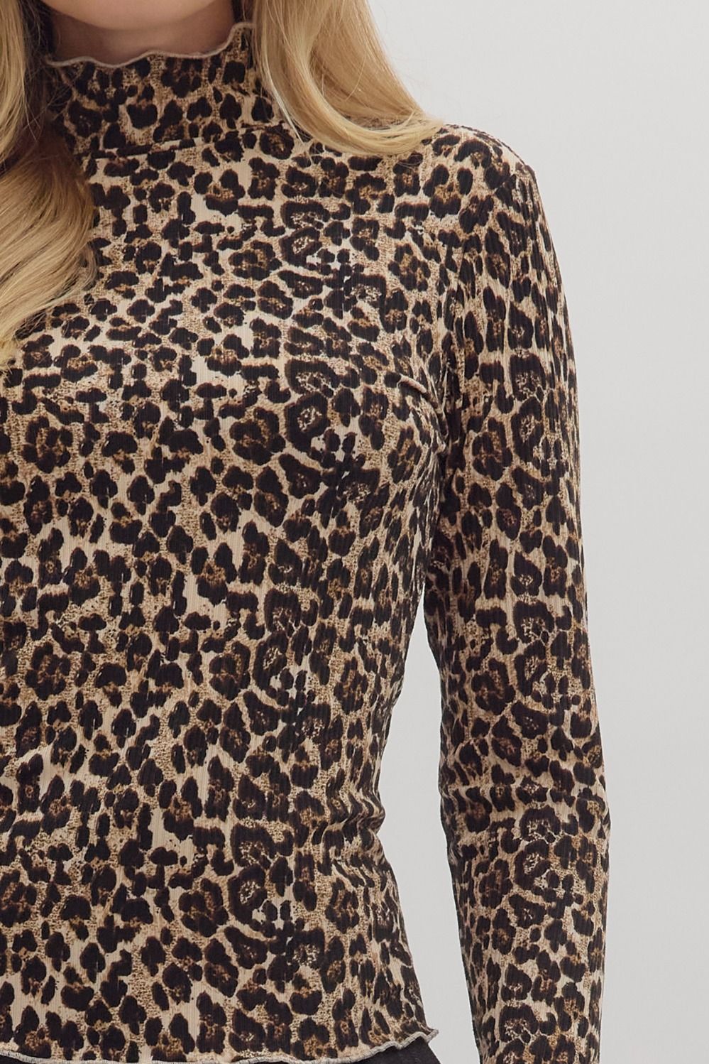 Add a wild twist to your wardrobe with this playful camel leopard mockneck top. Its long sleeves and cozy mock neck keep you comfy while the bold print adds a fun, fierce vibe to any outfit. Perfect for layering or wearing solo, it’s a stylish way to stand out with effortless charm.