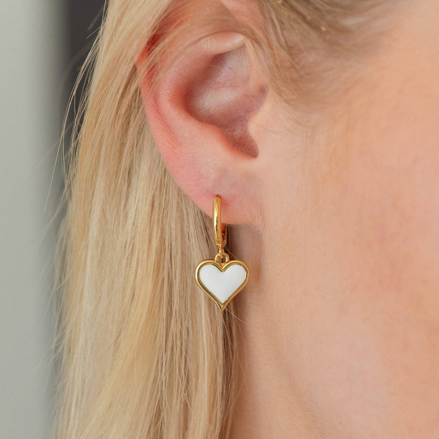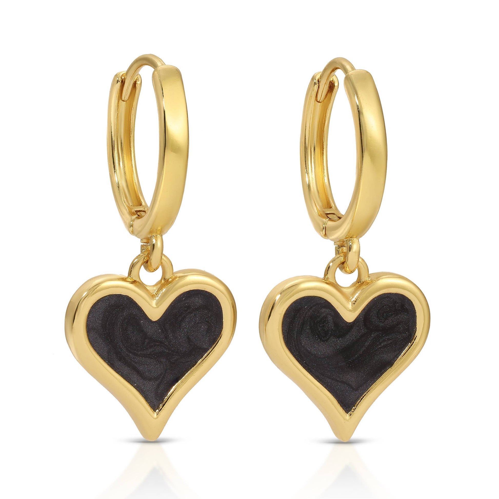 Be the queen of your heart! Our Black Heart Drop Earrings are a fun take on a huggie hoop style! 1.1" Drop 18k Gold Plated Brass Base Enamel