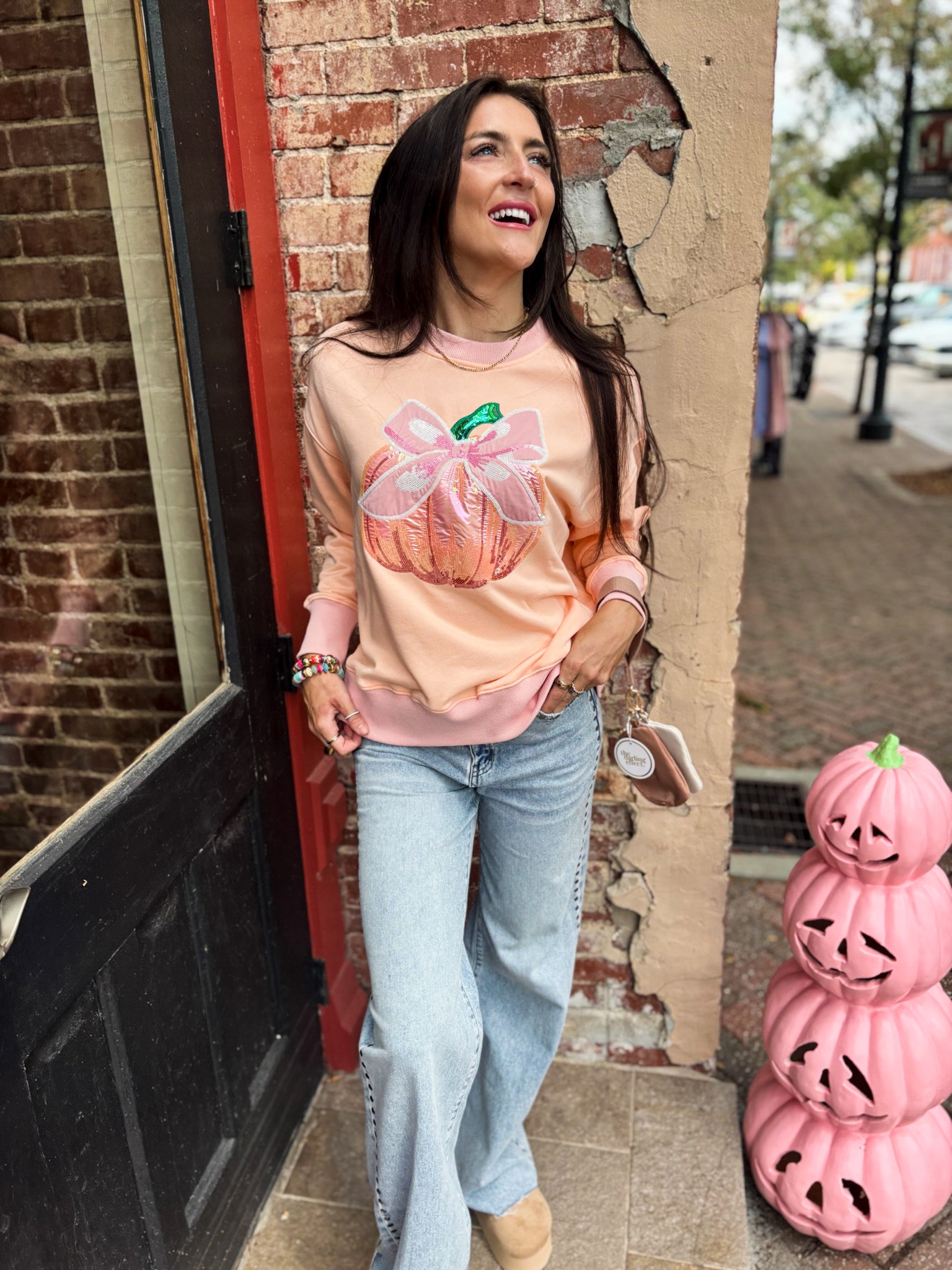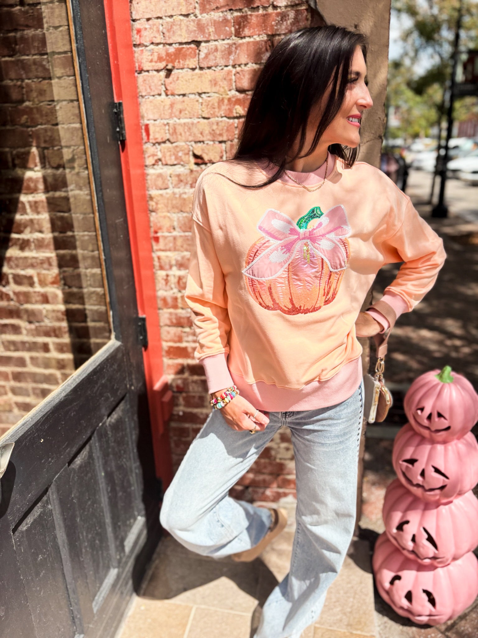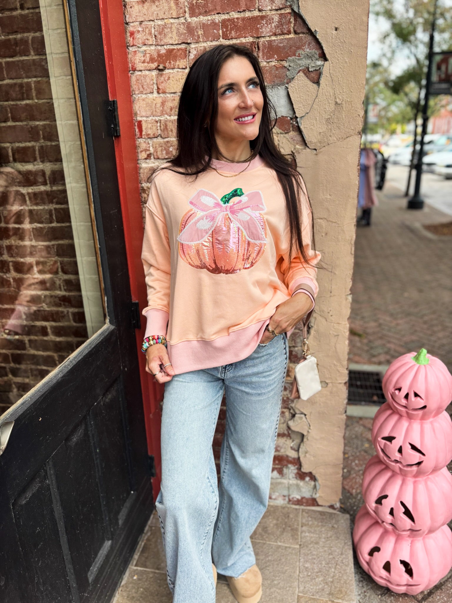 Celebrate fall in style with the Brianna Cannon Cutest Pumpkin Sweatshirt. This cozy crewneck features a playful embroidered pumpkin embellished with sparkling sequins, adding a fun and festive sparkle to your outfit while keeping you warm and comfy all season long.