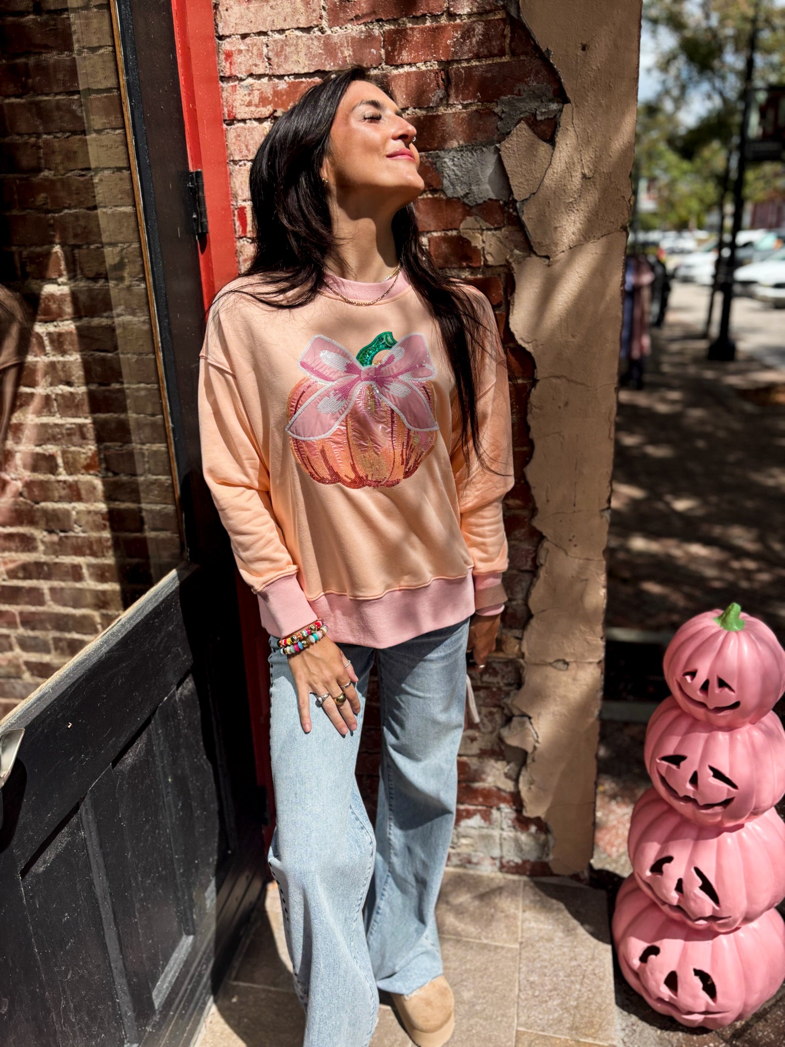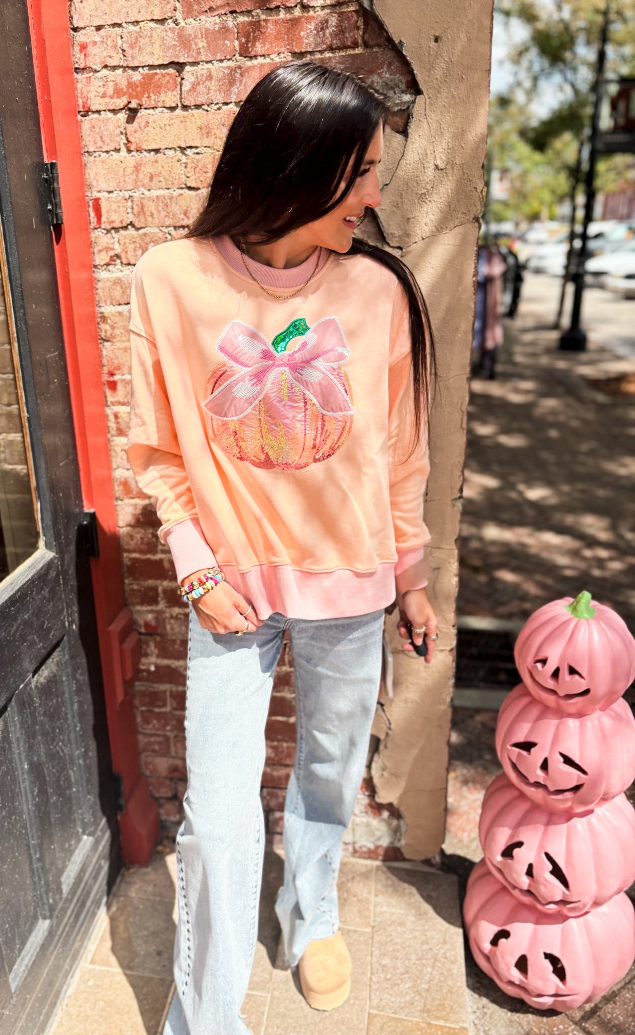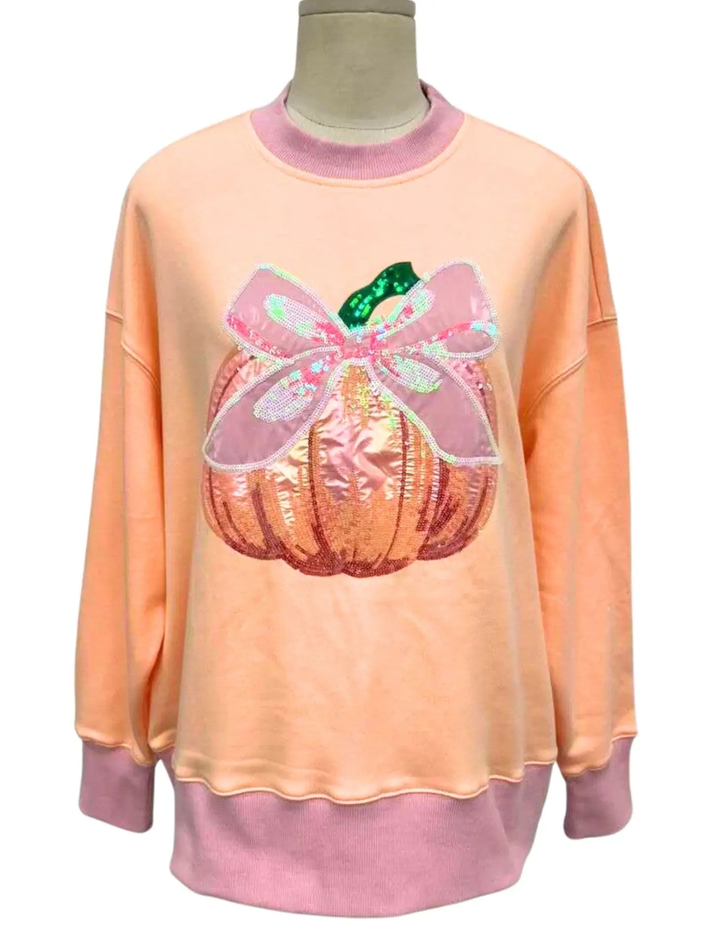 Celebrate fall in style with the Brianna Cannon Cutest Pumpkin Sweatshirt. This cozy crewneck features a playful embroidered pumpkin embellished with sparkling sequins, adding a fun and festive sparkle to your outfit while keeping you warm and comfy all season long.
