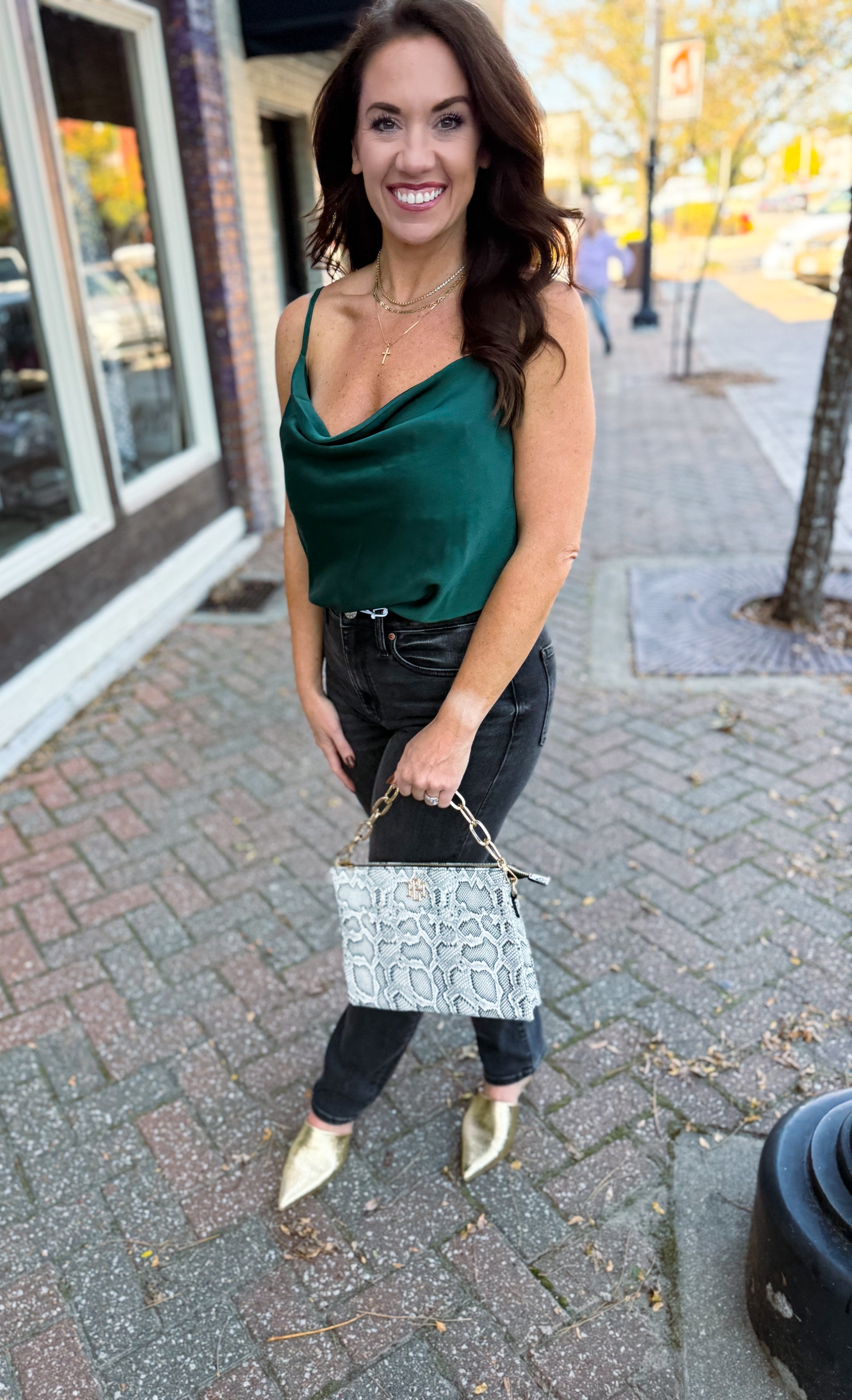 Emerald Nights Spaghetti Strap Cowl Neck Bodysuit