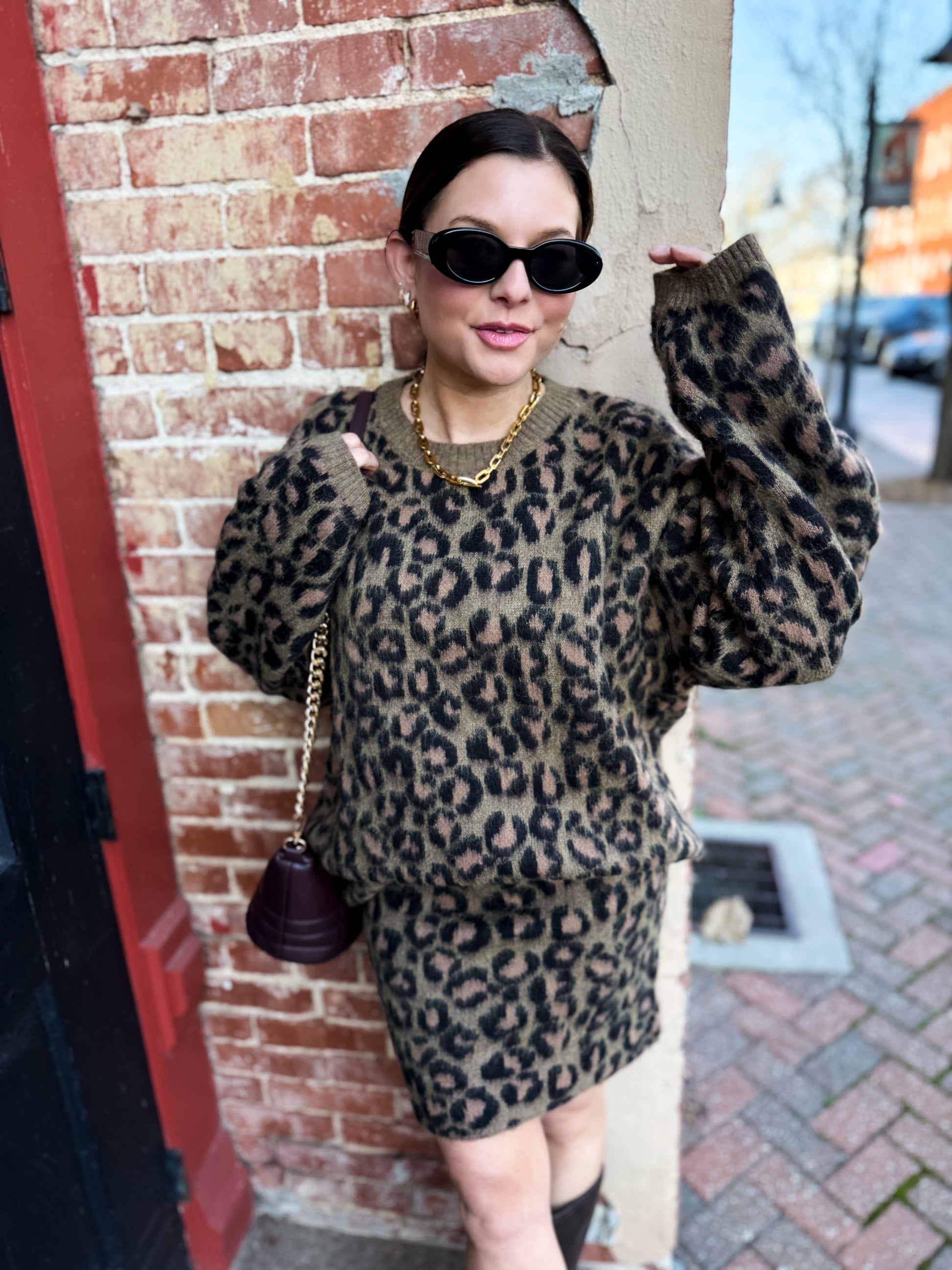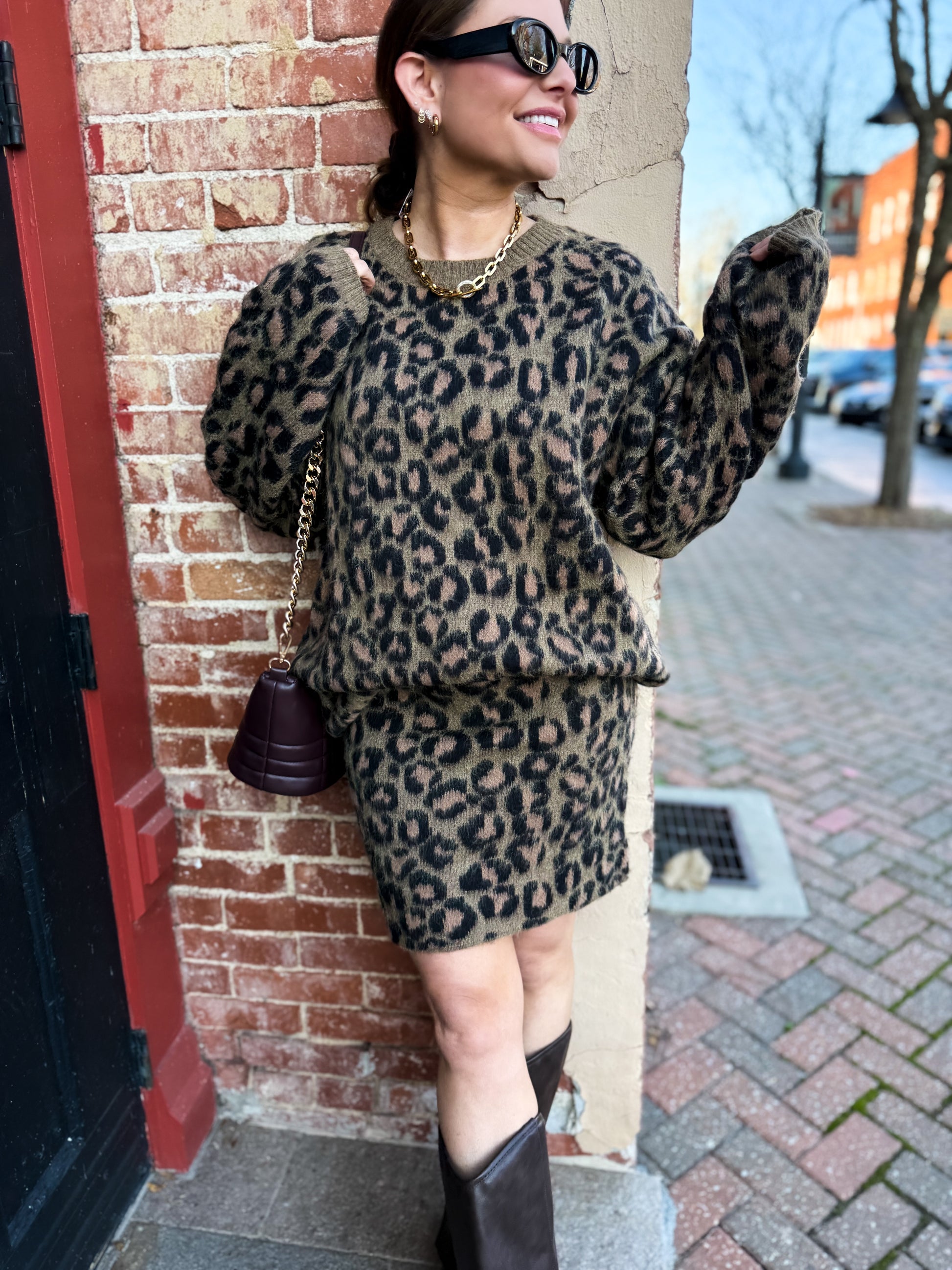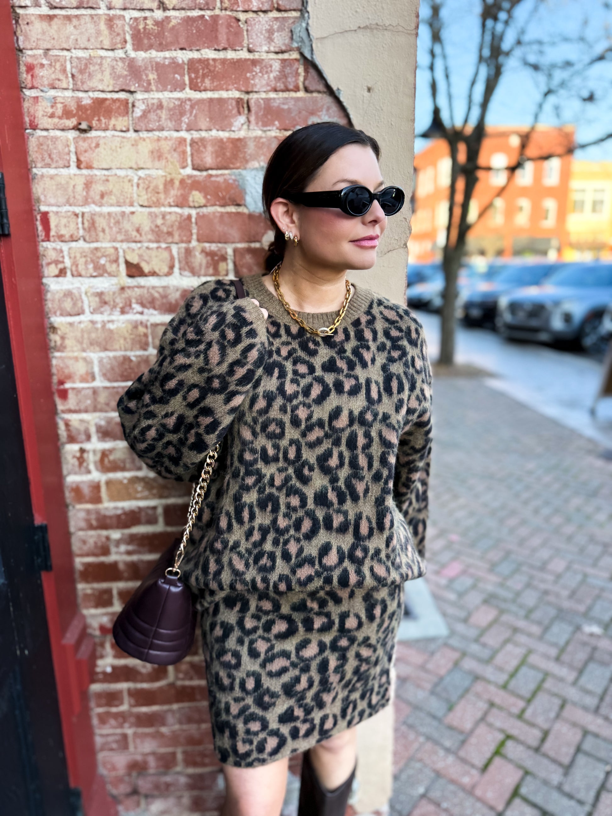Embrace your wild side with the Feline Fuzz Set—a playful pairing that brings spotted sophistication to your wardrobe. The cozy fuzzy leopard sweater features a soft, touchable texture that's perfect for layering or standing solo, while the matching elastic waist pencil skirt offers a flattering, comfortable fit that moves with you. Together, they create an effortlessly chic look that's equal parts fun and fashion-forward. Whether you're heading to brunch or a casual night out, this coordinated duo lets you make a statement without trying too hard.