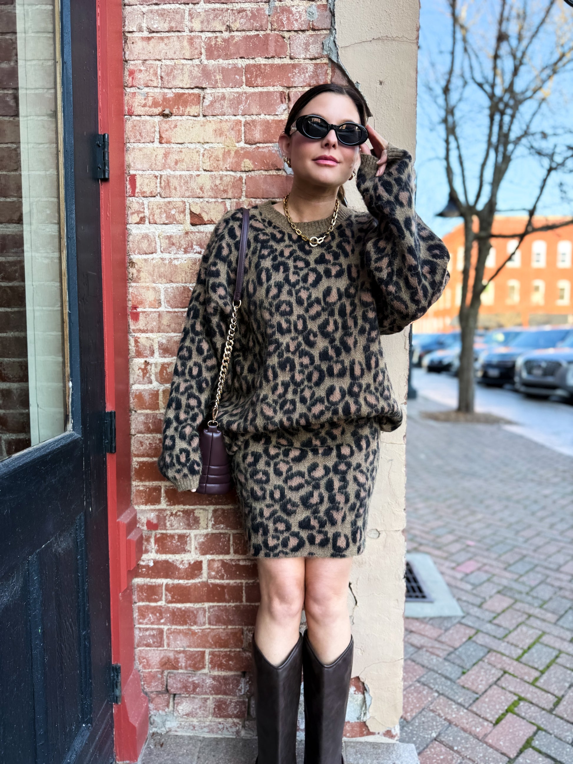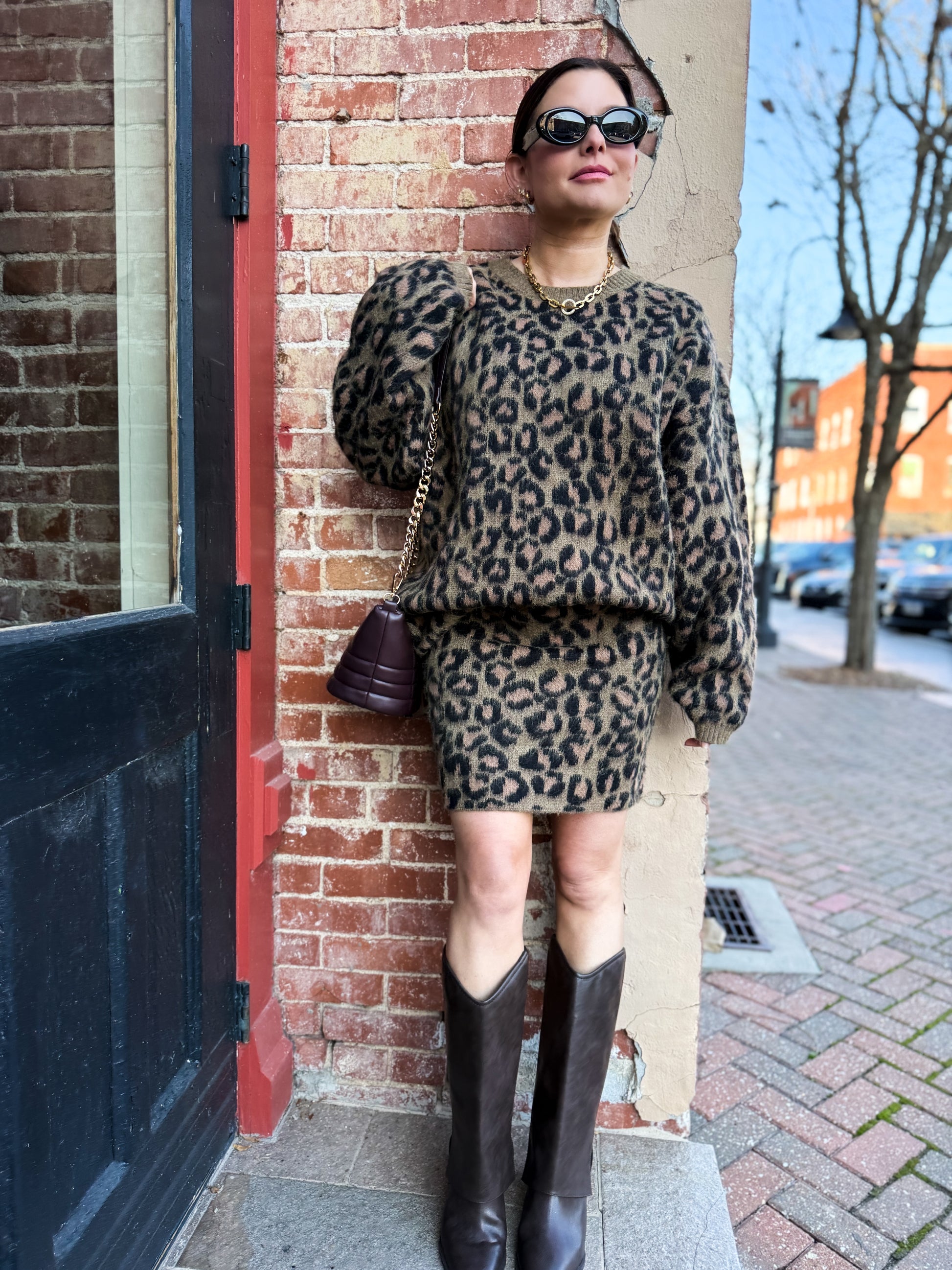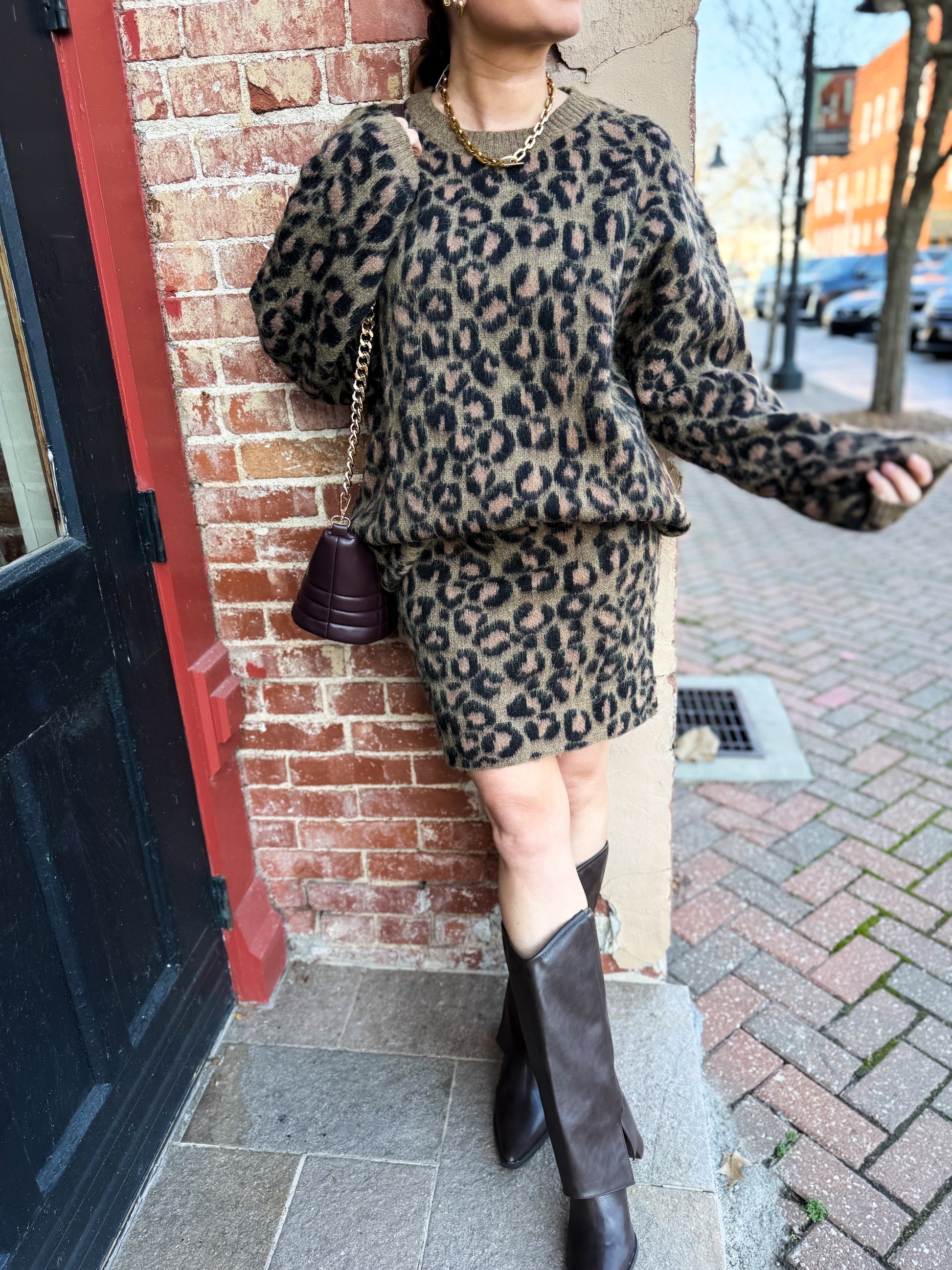 Embrace your wild side with the Feline Fuzz Set—a playful pairing that brings spotted sophistication to your wardrobe. The cozy fuzzy leopard sweater features a soft, touchable texture that's perfect for layering or standing solo, while the matching elastic waist pencil skirt offers a flattering, comfortable fit that moves with you. Together, they create an effortlessly chic look that's equal parts fun and fashion-forward. Whether you're heading to brunch or a casual night out, this coordinated duo lets you make a statement without trying too hard.