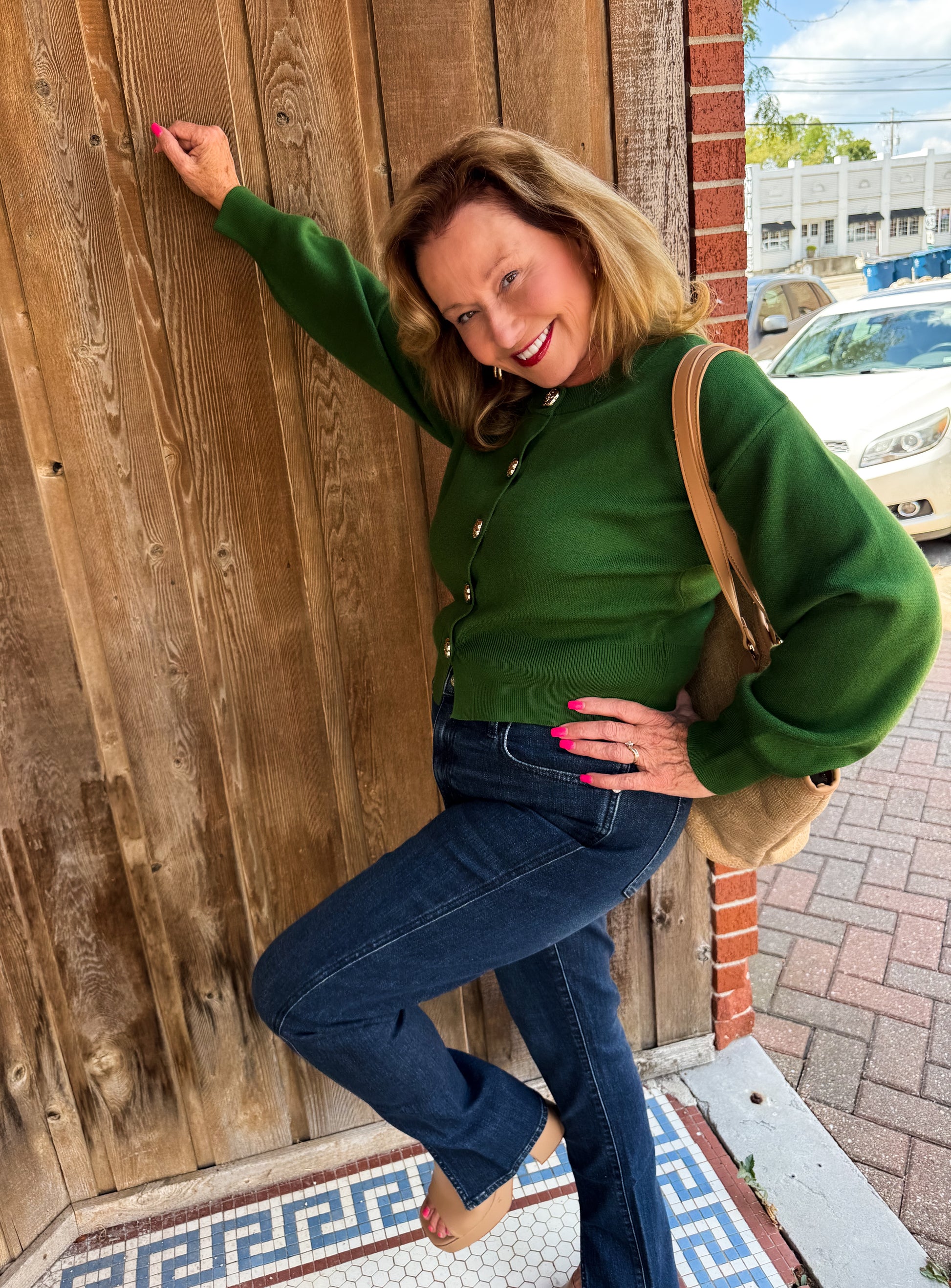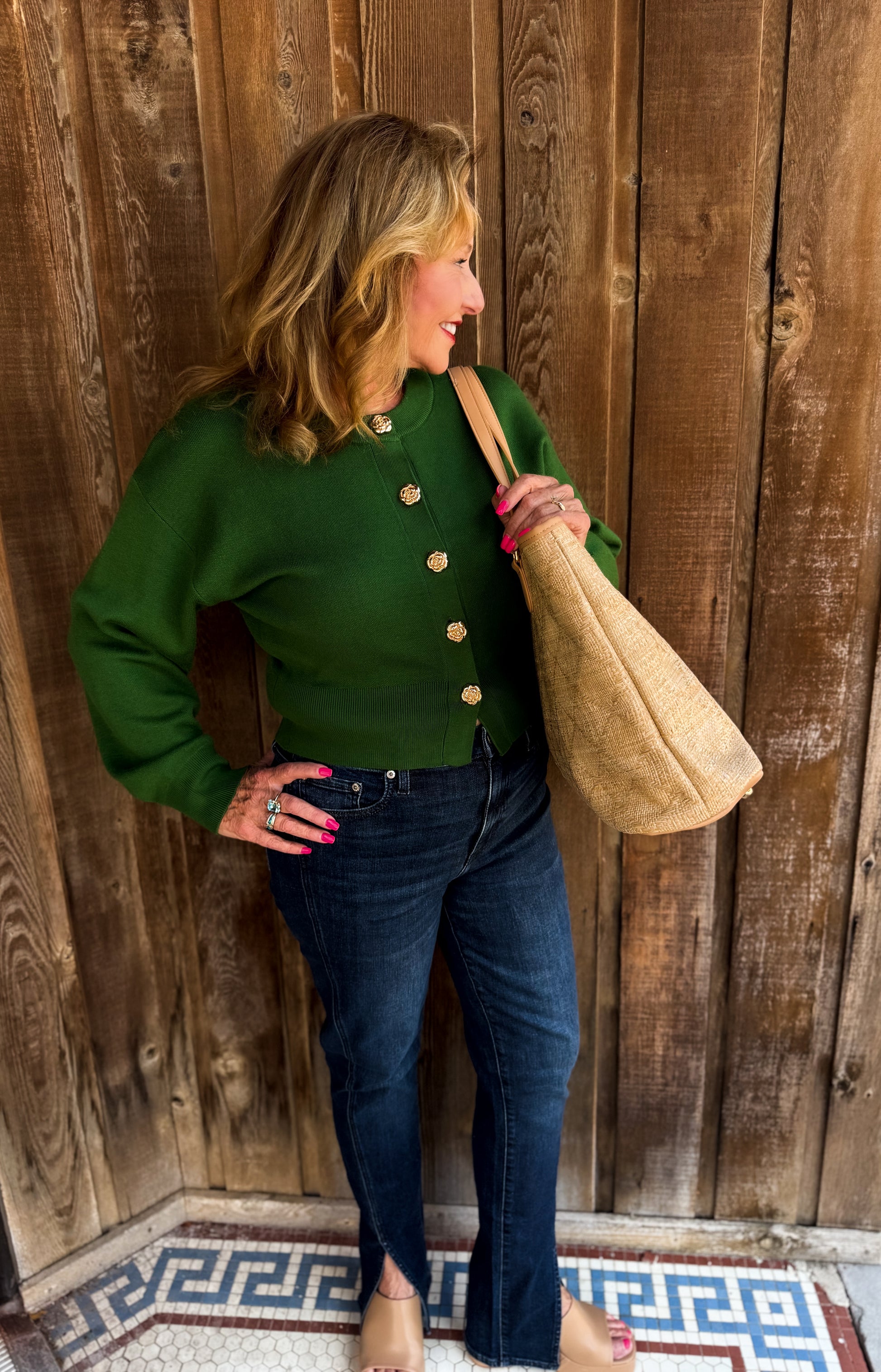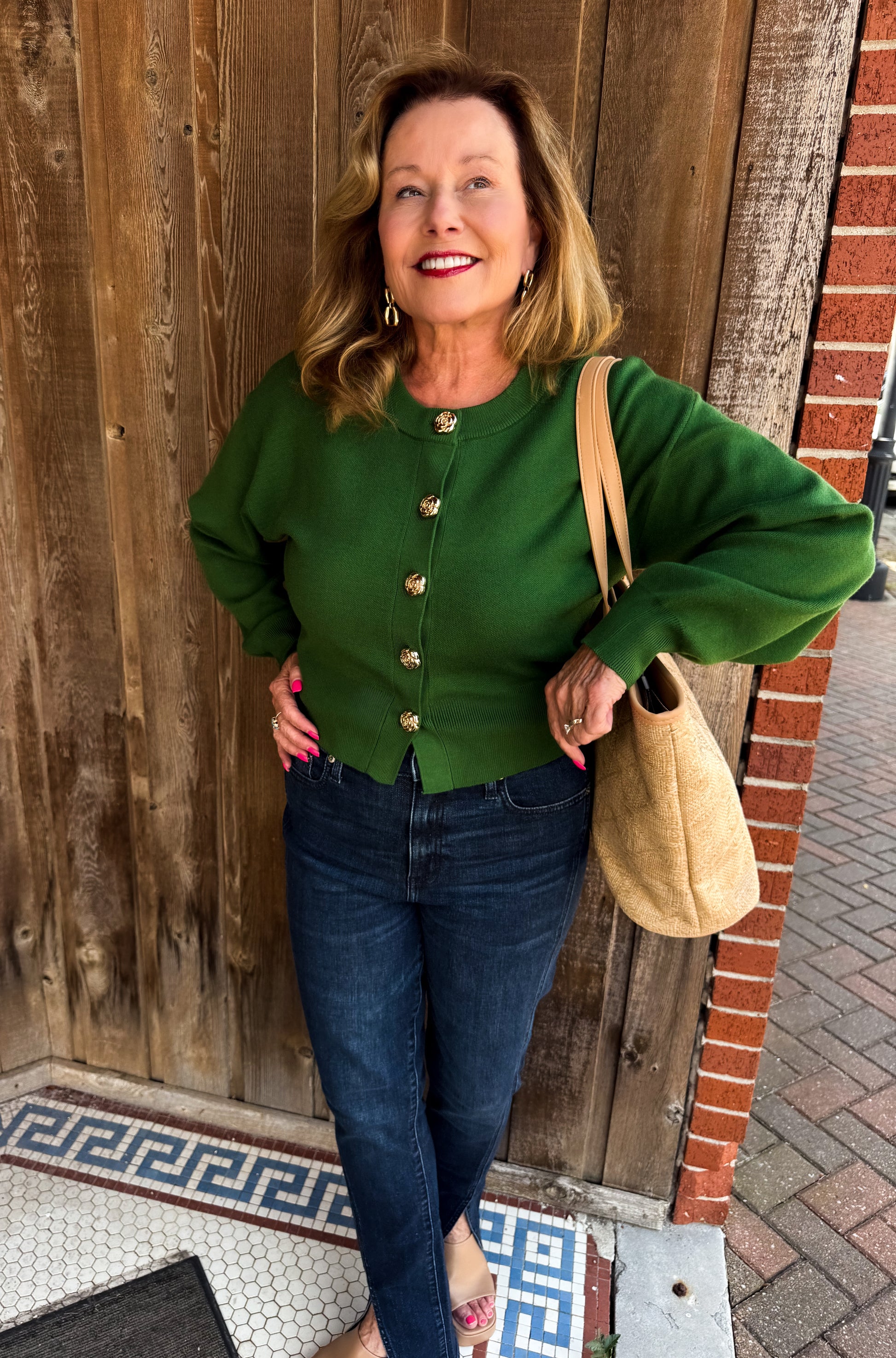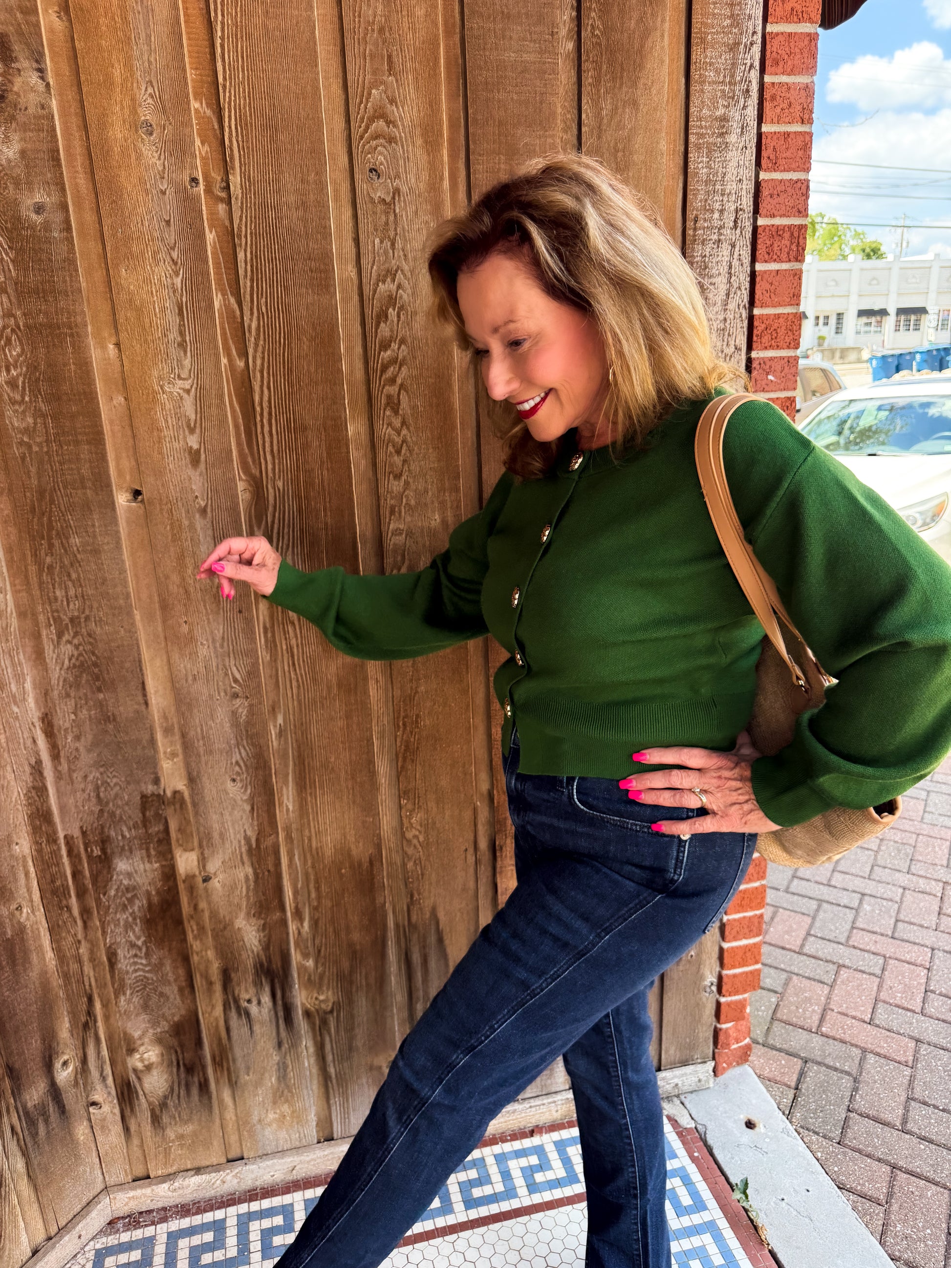 Cozy up in the Forest Femme Cardigan, a playful twist on your classic sweater. This cropped cardigan features long sleeves and a soft knit fabric that feels like a warm hug. The gold accent buttons add a touch of sparkle, making it perfect for layering or wearing solo on cooler days. Elevate your look with this charming and comfy staple!