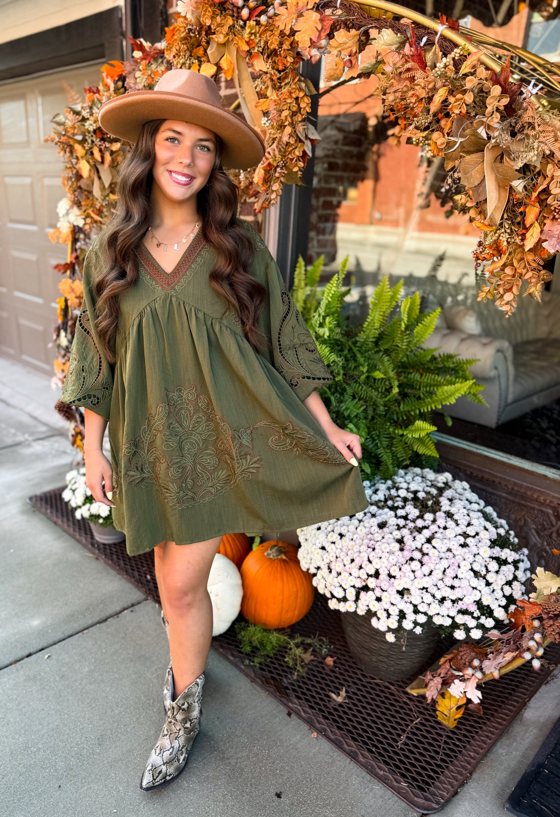 The Kelce Embroidered Mini Dress brings playful charm with its delicate floral embroidery and flirty 3/4 sleeves. Featuring a flattering V-neck and charming eyelet cutouts at the sleeves, this lightweight woven dress stays comfy with elasticated sleeve openings. Fully lined and non-sheer, it’s perfect for twirling through sunny days or evening fun.