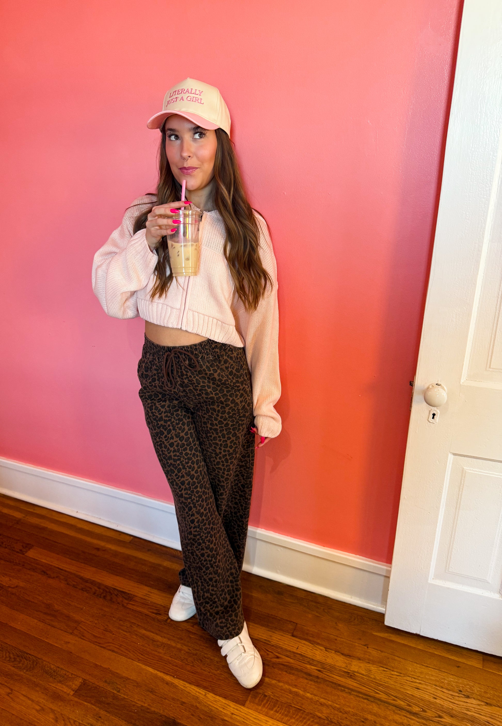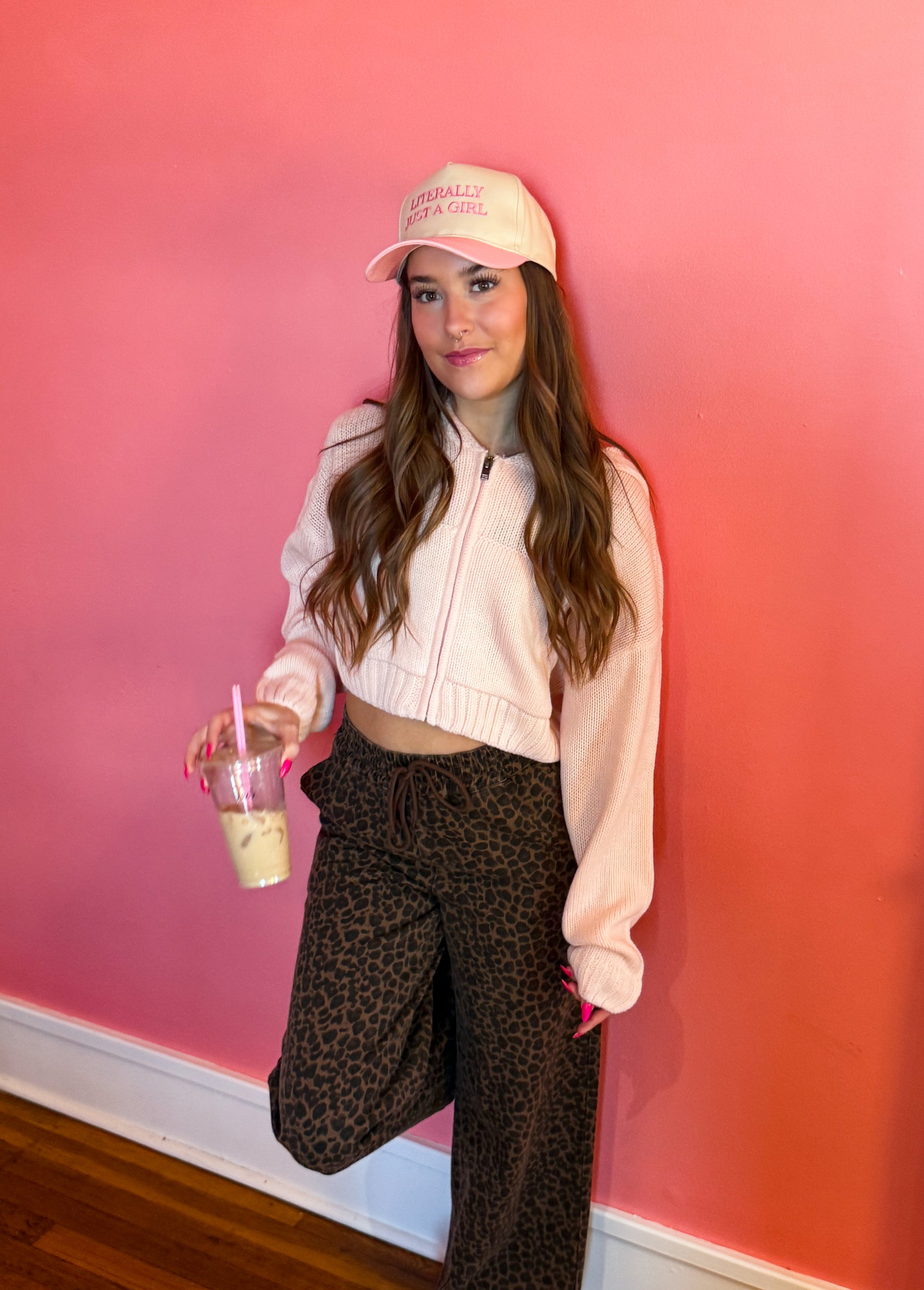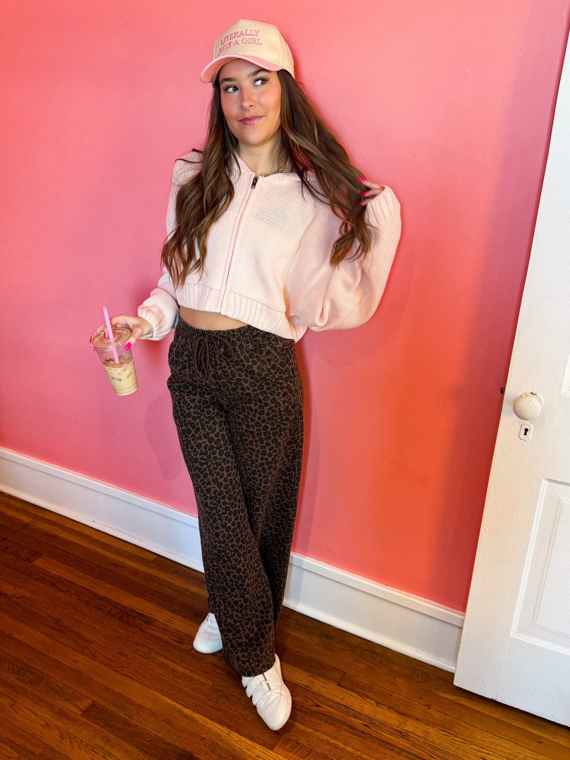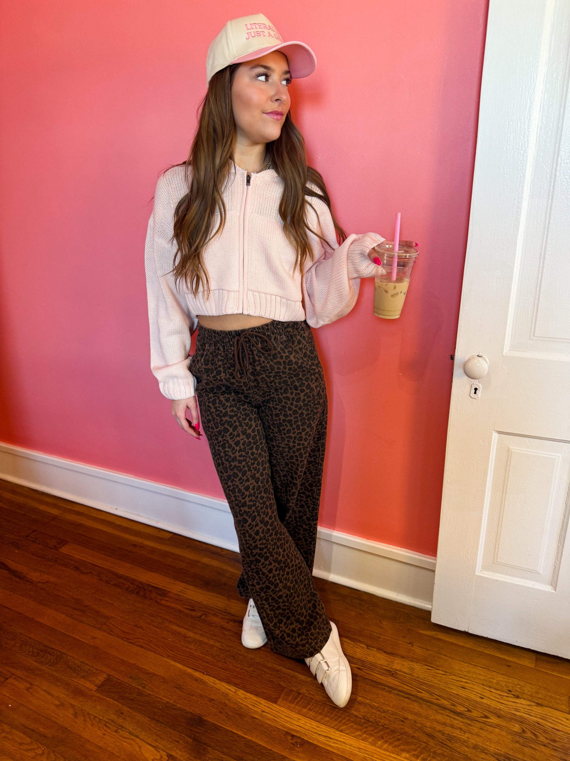 Pretty in Pink Knit Zip Up Hoodie Sweater