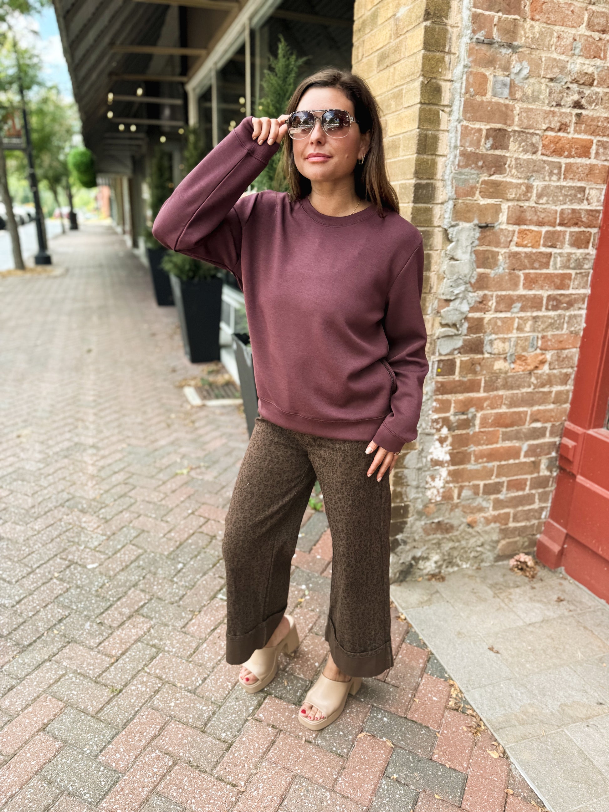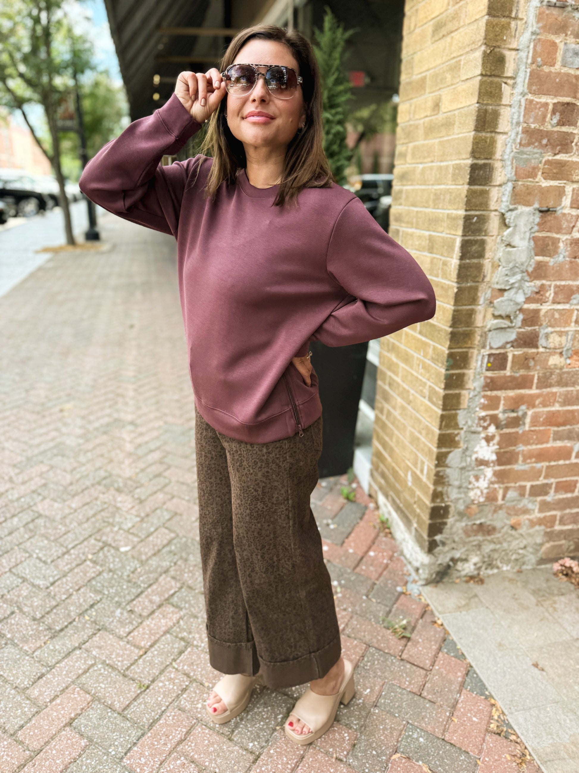 Wrap yourself in cozy cloud-like comfort with the Merlot Truffle Cloud Fleece Crew by Vintage Havana. Featuring playful zipper details on the sides, this fleece adds a fun twist to your casual look while keeping you warm all day. Perfect for layering or lounging, it’s the snug piece your wardrobe’s been dreaming of!